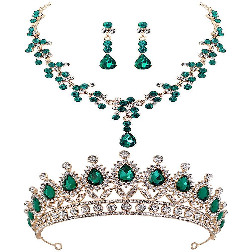 Wedding Jewelry Set Bridal Necklace Earrings Crown Shape for Special Occasions Green Zinc Alloy 1Set