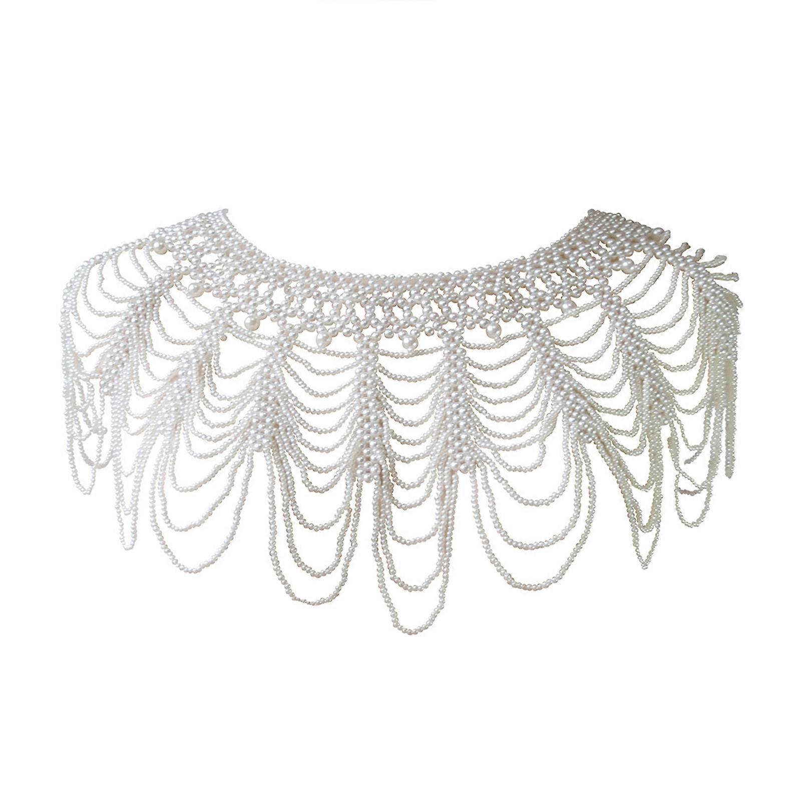 Artificial Pearl Shawl for Wedding Dress Fashion Shoulder Chain for Cheongsam Elegant Shoulder Wrap for Formal Occasion White