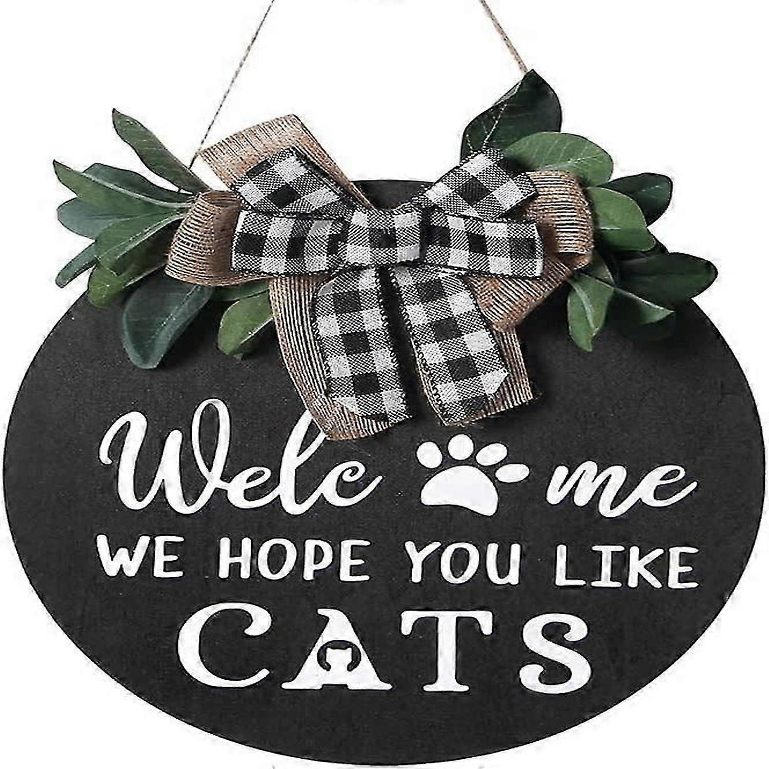 Welcome Sign 30cm Welcome We Hope You Like Cats Wooden Welcome Wreath Door Hanger