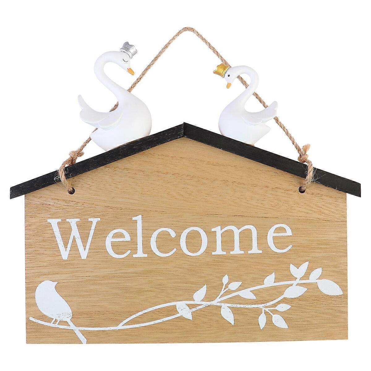 Welcome Door Sign Wooden Home Decoration Sign with Pair of White Swans