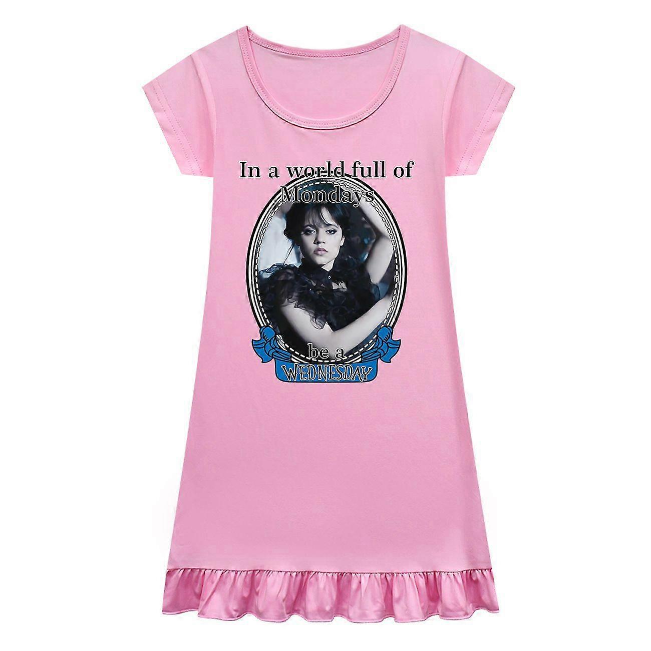 Wednesday Addams Printed Dresses Kids Girls T-shirt Dress Short Sleeve Pajamas Summer Loose Casual Crew Neck Dresses Multiple Sizes Available