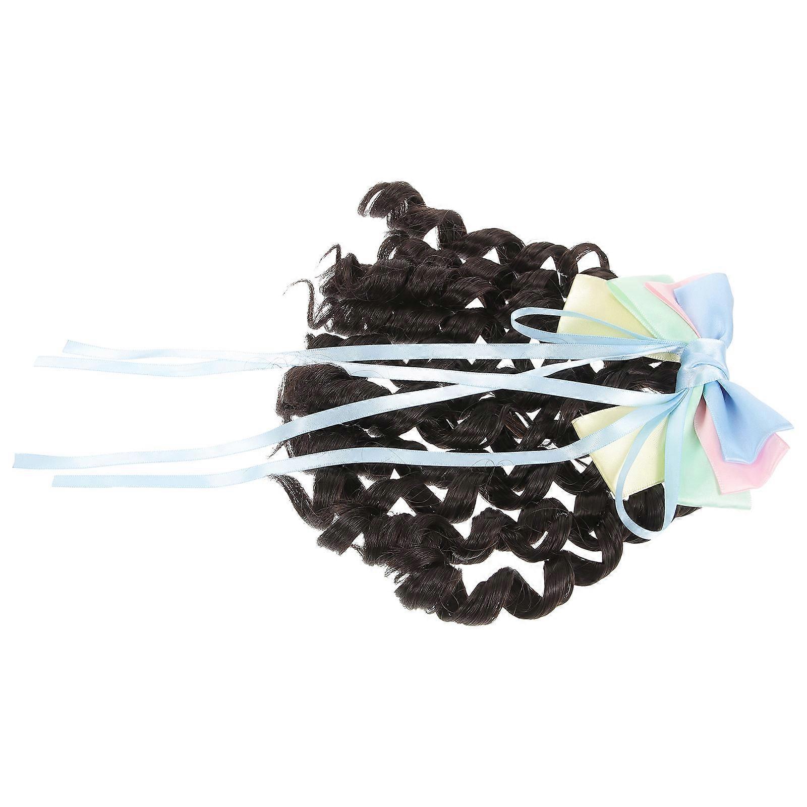 Wavy Wig Bow Long Curly Hairpiece for Women 2Pcs Prom Cosplay Accessory