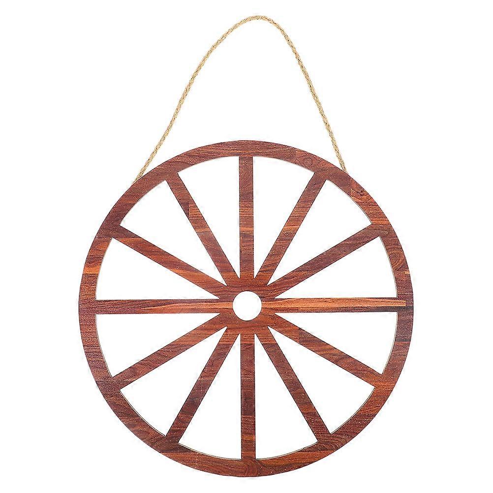 Western Wheel Wall Decor Rustic Style Round Hanging Art for Various Scenes 30cm Wood Material 1Pcs