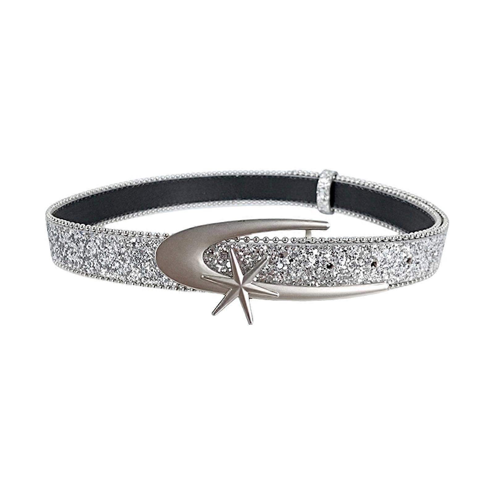 Waist Belt Beaded Buckle Encrusted Crystal Belly Chain for Casual Wear for Women and Men Shining Glitter Silver