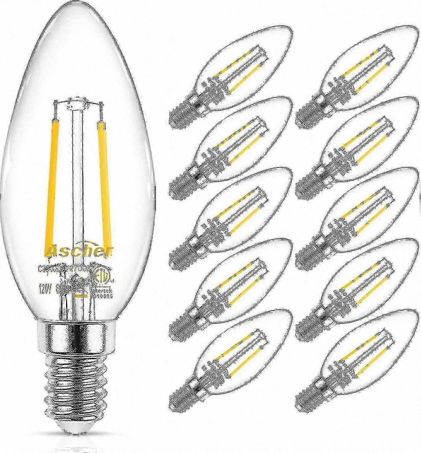 Warm White 2700K E12 LED Bulb, Clear Glass Filament, Non-Dimmable, 40W Equivalent, Candelabra Style, Pack of 10