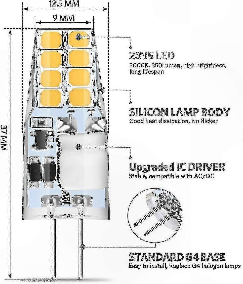 Warm White G4 LED Bulbs, 12V 3W, Pack of 10