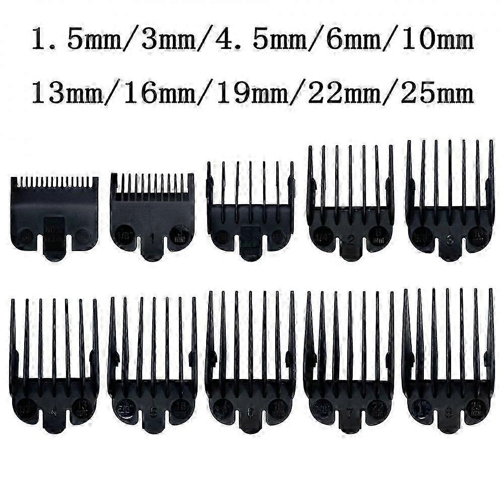 Set of 10 Professional Hair Clipper Comb Guides for Most Sizes of Wahl Scissors/Trimmers 10 different sizes of guide combs, you can freely choose the size you like. Whether you're new to cutting hair or a seasoned one, replacement clipper guide combs will be a huge help. Easy to operate: Simply attach the comb to the blade base and pull up to secure. These hair clipper guards for wahl are sturdy, easy to snap on and off, and feature a large hair clipper comb so you can keep the volume on top and enjoy a smooth, time-saving finish that you and your clients will appreciate. . Suitable for WAHL oil head gradient electric hair clipper suitable for limited combing hair clipper caliper centimeter set black tooth accessories Note: The data are all manual measurements, please allow 1 - 3cm error, due to the difference in light and display, there will be a certain color difference, depending on the physical object receivedDelivery quantity: (according to the main picture)