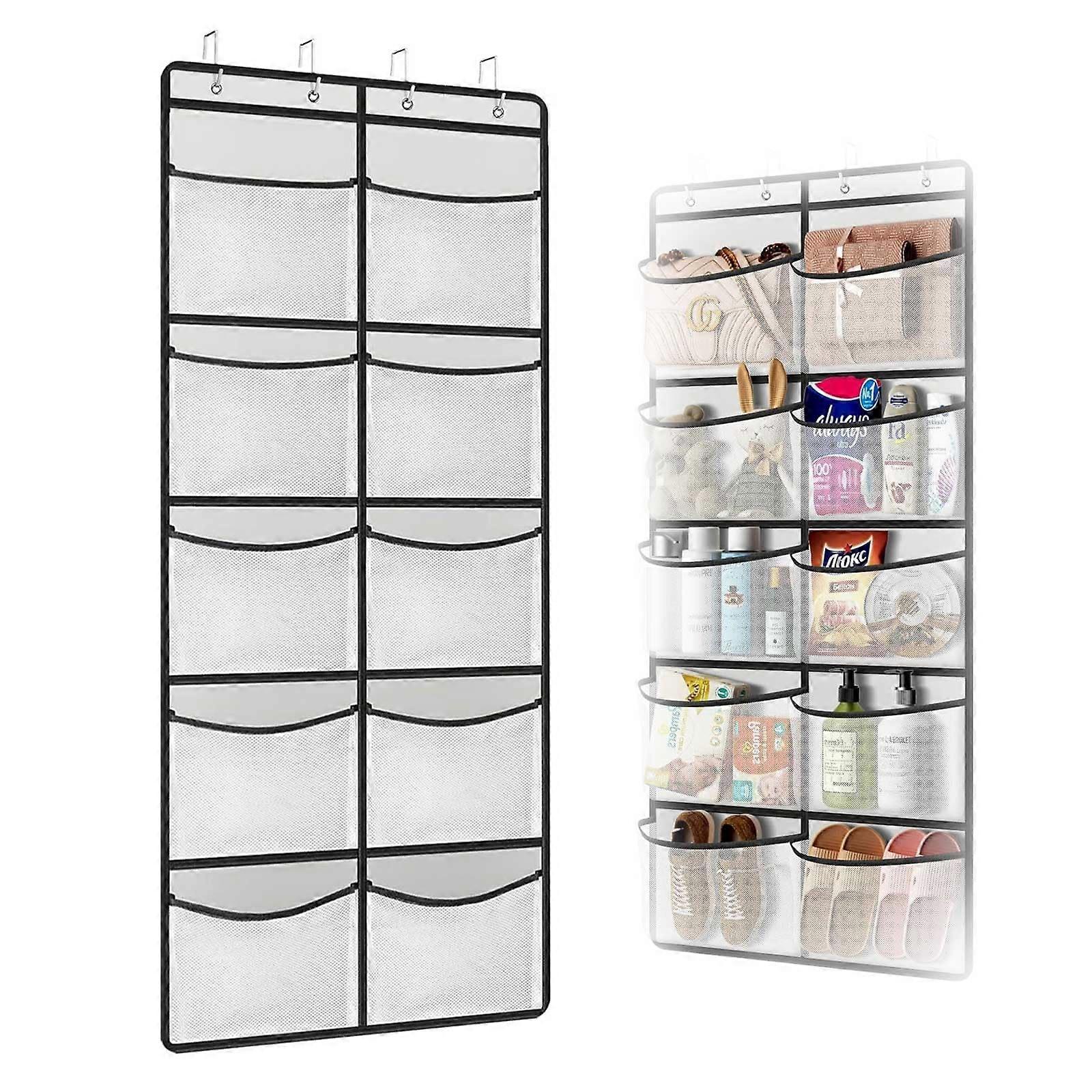 1. Premium material: The hanging organiser is made of highquality, odourless, threelayer, breathable composite nonwoven fabric. The elastic edges of the mesh bag make the bag stronger, so you don't have to worry about the bag slipping or tilting. 2. Large storage capacity: This wardrobe organiser has enough space and robust mesh pockets. It has 10 large and deep pockets that are enough to meet your daily storage needs and is transparent for easy viewing. 3. Beautify the space: The hanging shelf is simple and stylish. It can not only organize and store items, adding a warm decoration to the room, but also make the use of the wall surface to create a clean and tidy living environment for you. 4. Easy to install: The cabinet organiser wardrobe contains 1 hanging bag and 4 carrying metal hooks. There are four round holes on the top of the bag, allowing you to hang it directly on the door or use the hooks for hanging, which is very practical.