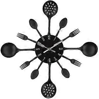 Wall Clock, 16" Metal Kitchen Cutlery Utensil Spoon Fork Wall Clock