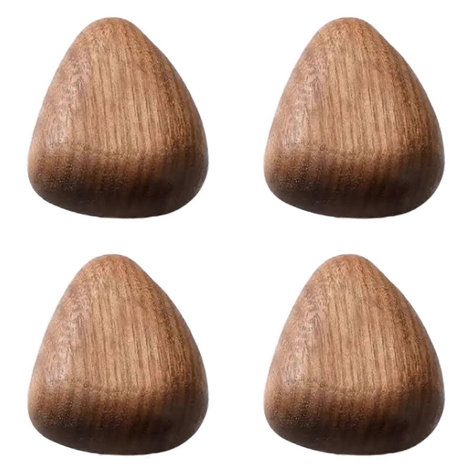 Walnut Wood Knob - 4 Pcs Natural Triangle Pulls for Kitchen Cabinets, Drawers, Wardrobe, Dresser, and Coat Hooks