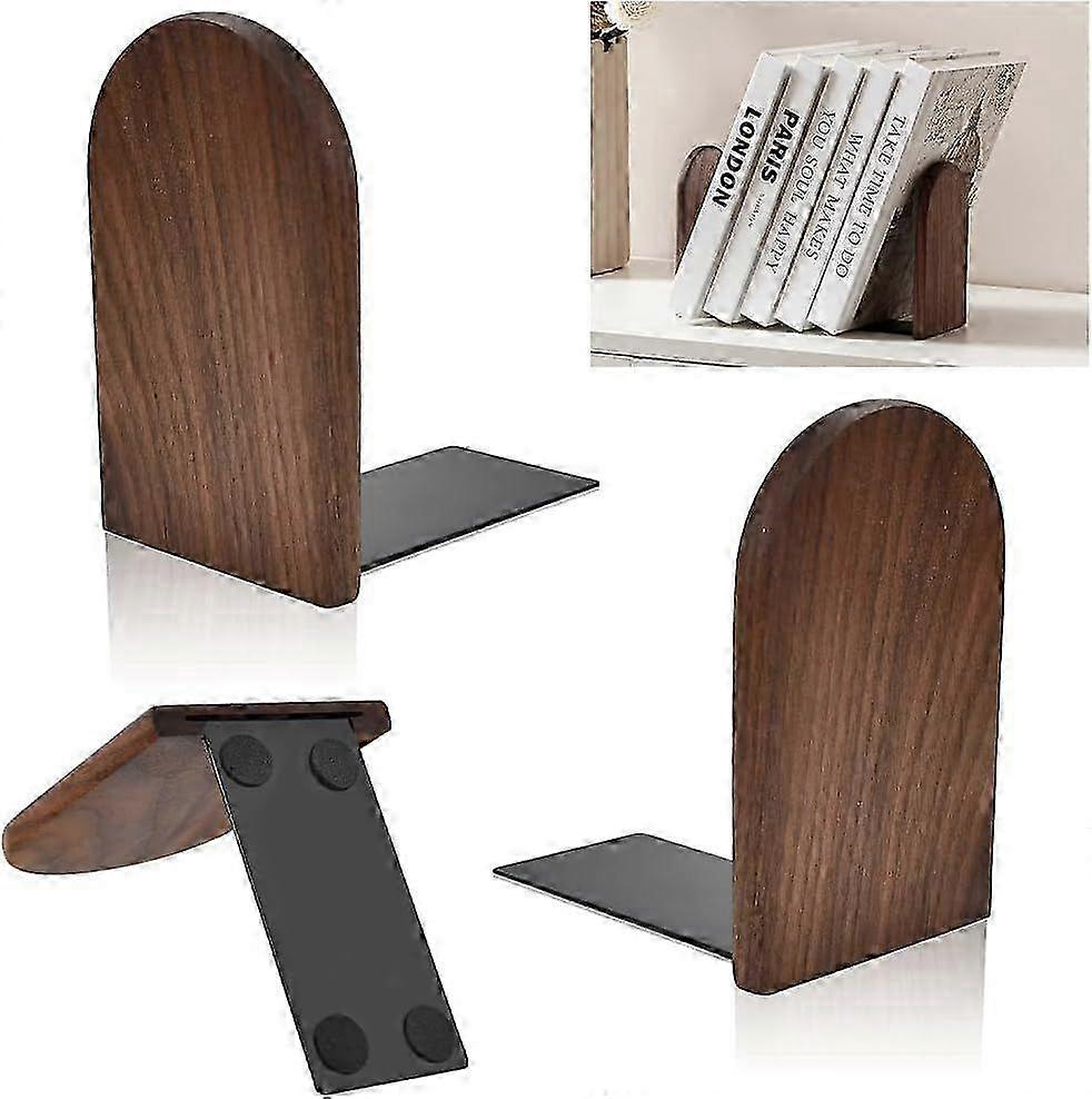 Walnut Wood Bookends, Non-Slip Heavy Duty Round Book Supports