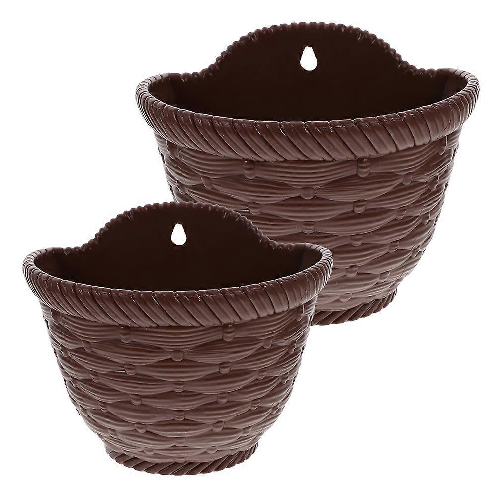 Wall Plant Holder Woven Hanging Flower Basket Balcony Garden Indoor Decoration 26.00X19.50X17.00CM Plastic Material 2Pcs