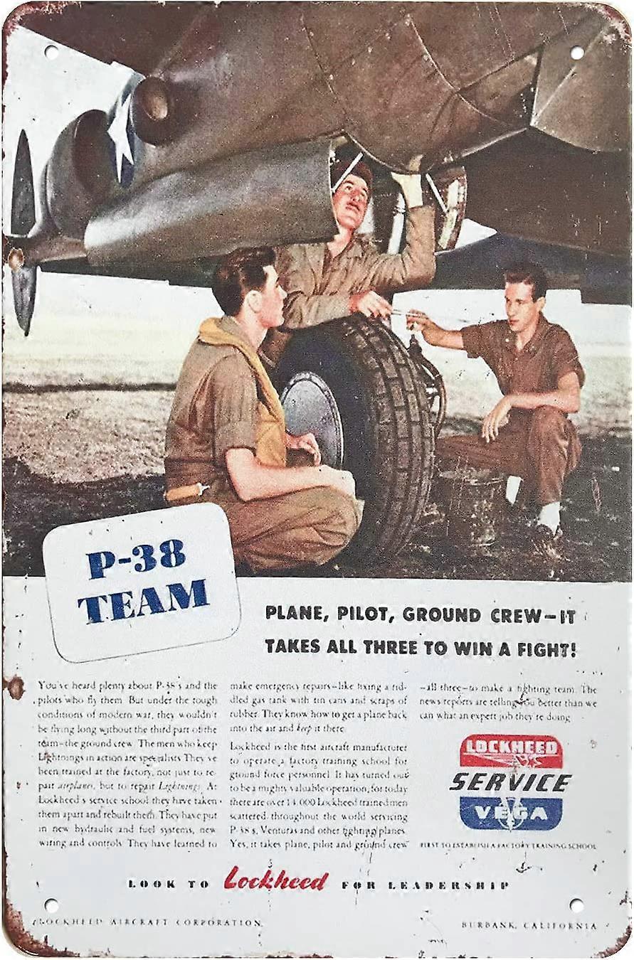 Wall Plaque 8X12 Inch 1944 WWII Lockheed P-38 Lightning Pilot Rustic Retro Metal Sign Man Cave Garage Tin Plate