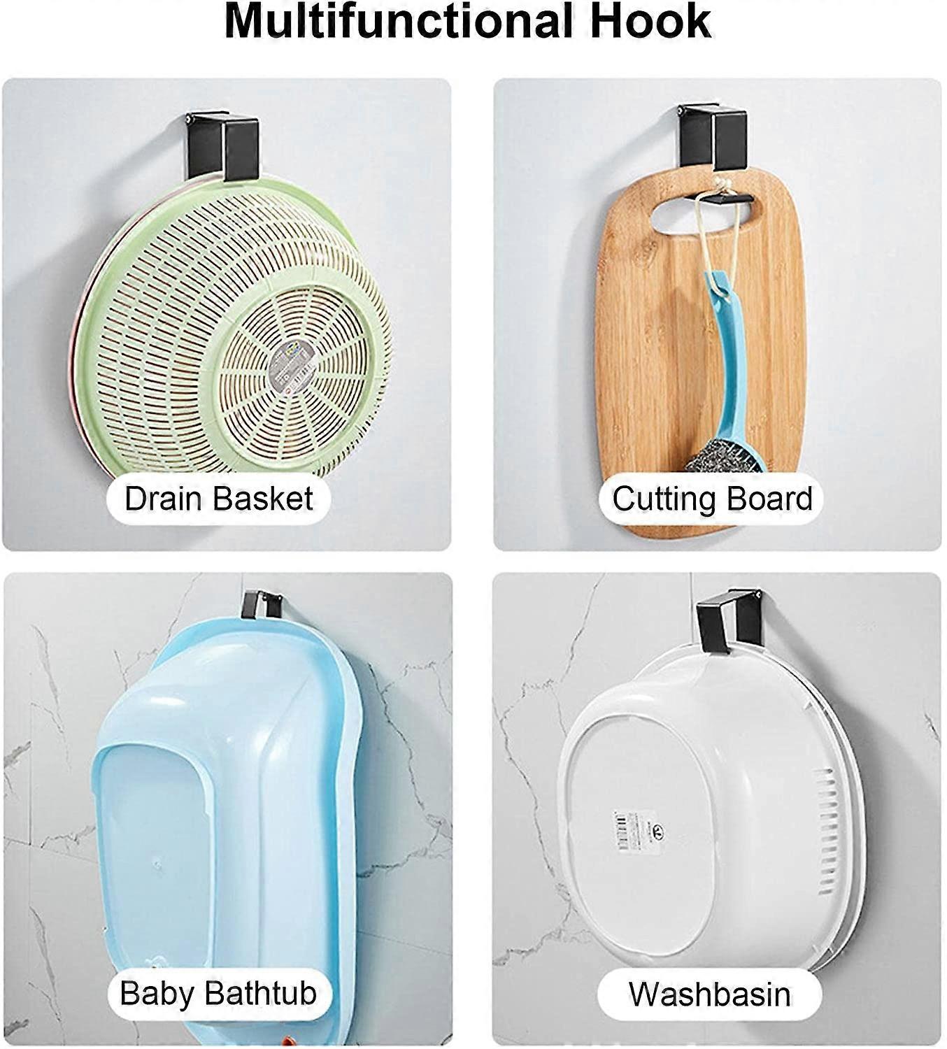 Multifuncitonal Hooks for Wall - Our household wash basin wall hooks are multifunctional. You can use it in your kitchen, living room, bedroom, or bathroom as the hooks or hangers of coats, purses, hats, washing basins, towels, or bathrobes. Heavy Duty - Our bathroom wall hangers can support the weight up to 15lbs, which means our wall hanger hook is able to hang most household stuff such as clothes or bathroom supplies such as towels, washbasins, or bathrobes. Waterproof - Made of solid stainless steel material, our heavy-duty wall hooks have a long service life and are durable, waterproof, rust-resistant, and easy to clean. Easy to Install - A tube of glue is included in the package. You can install our household bathroom wall hooks on your walls without nails and no damage will be caused to your walls. Very easy to install. Wide Application - Have a wide application. Our household wall hangers can be installed in kitchen, bathroom, bedroom, office to hang wash basins, towels, bathrobes, coats, or purses. Material: Stainless Steel Color: Black Size: 75*62*37mm Features: Punch-free and Damge Free Easy to Install Heavy Duty Waterproof Space Saver Package Includes: Wash Basin Wall Hook *1 Glue *1