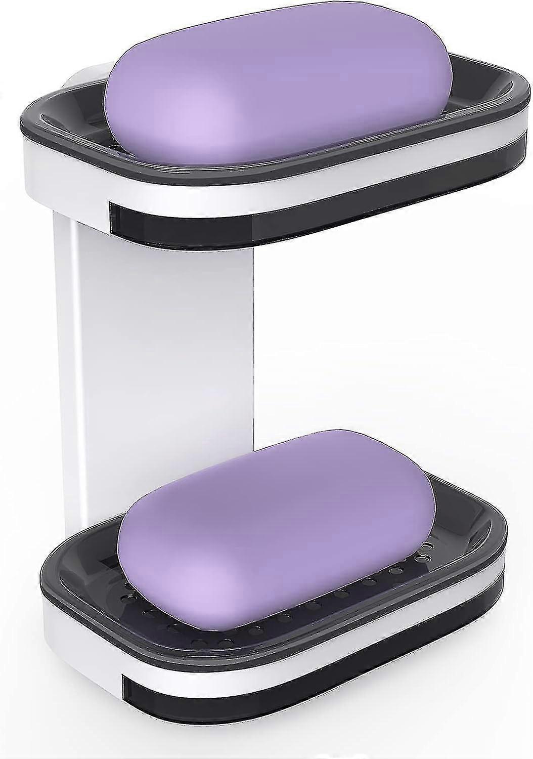 Wall Mount Suction Cup Soap Holder No Drill Double Layer Bathroom Organizer