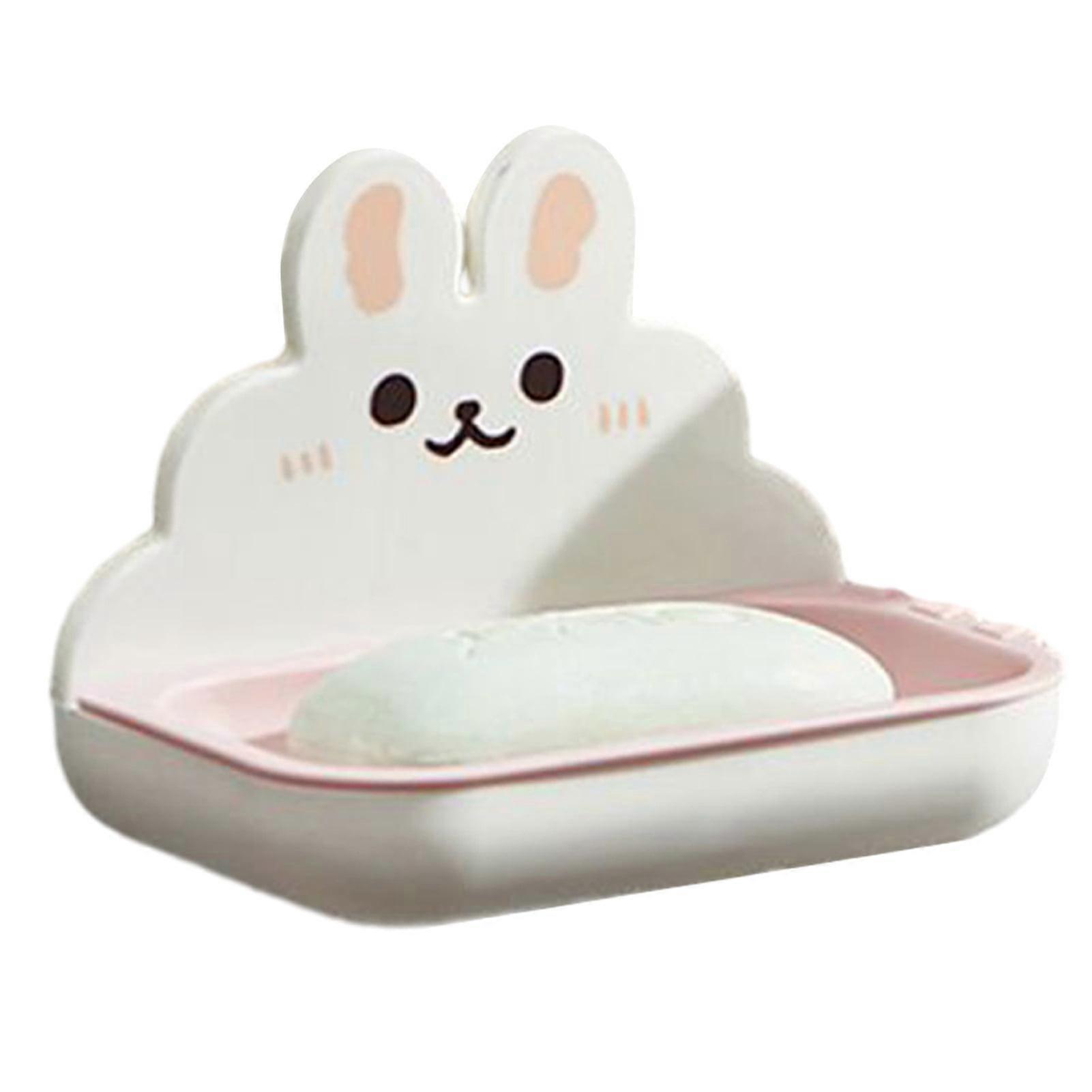 Wall Mount Soap Dish Cartoon Rabbit No Drill Double Layers Hollow Shower Soap Holder Container Box Saver Kitchen Bathroom Supplies