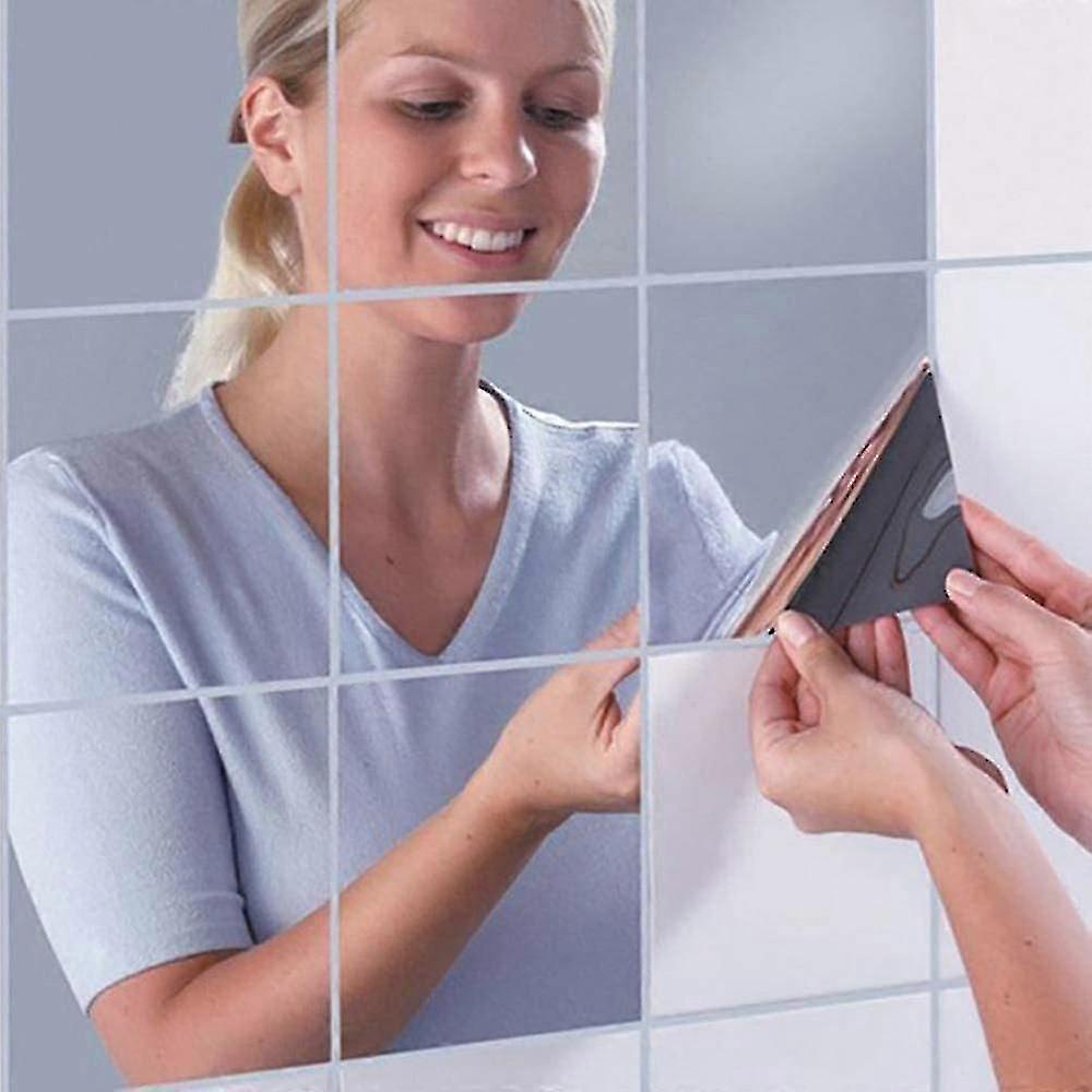 Wall Mirror Stickers Set, 16 Pcs Self-adhesive Plastic Flexible Square Decorative Mirrors Tile Silver Sticker For Glass Mirror Diy Home Art Room Decor