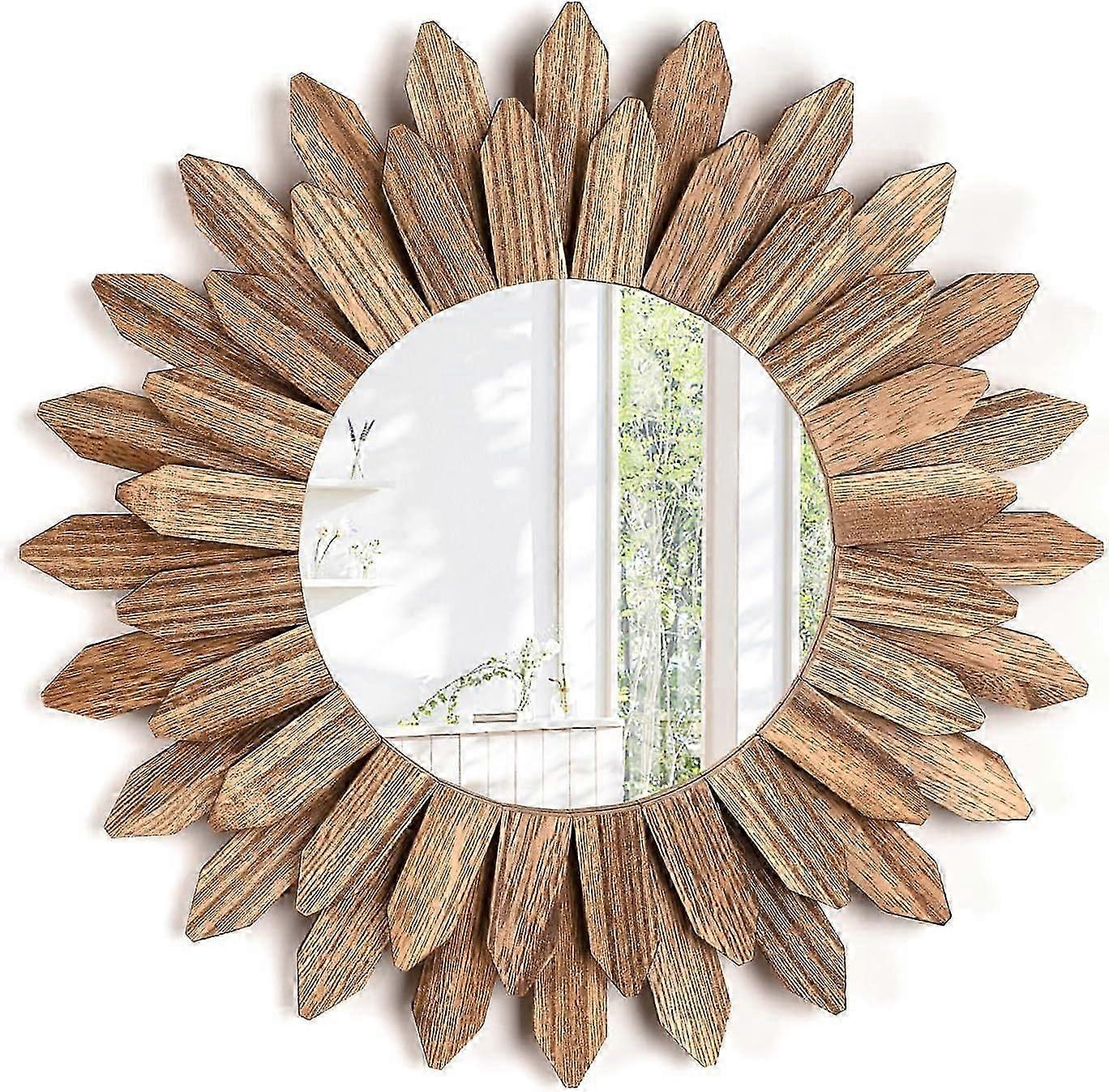 Wall Mirror 30cm Rustic Wood Farmhouse Boho Mirror Wall Decor for Bedroom Living Room Entryway