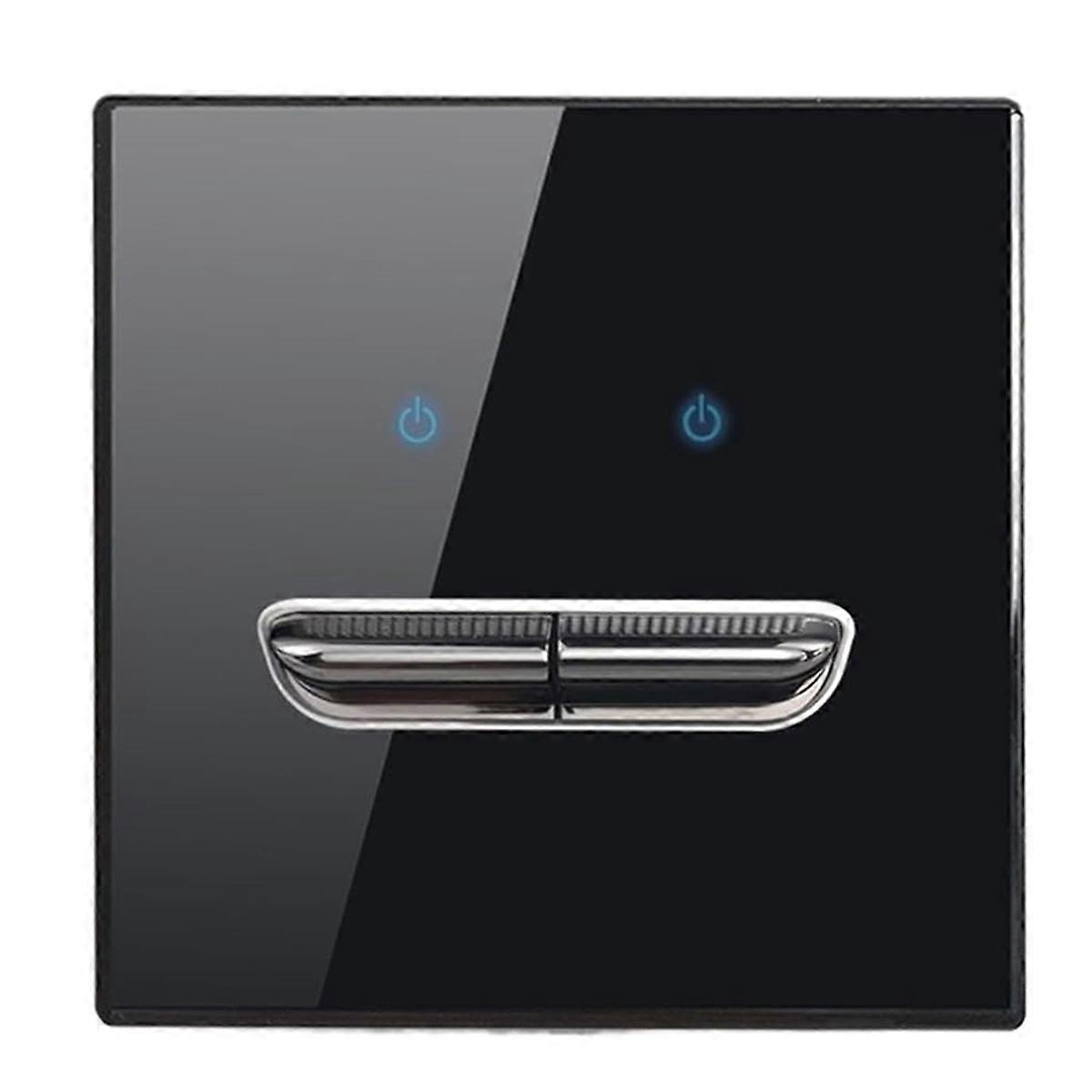 Wall Light Switch 2 Gang Tempered Glass Panel Blue LED Night Light Black Pass Through