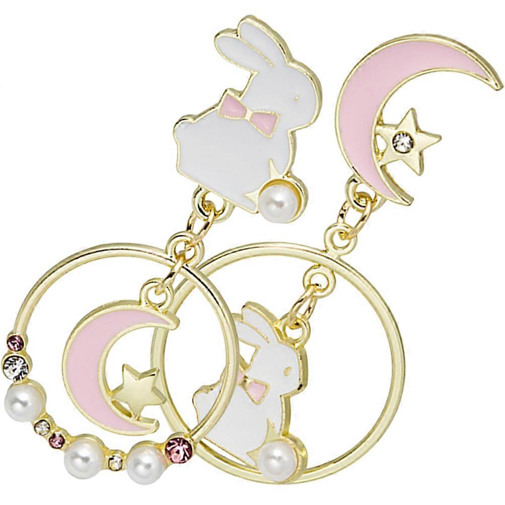 look with elements including moon, star and rabbit, these lovely earrings can better meet your decorative demands. Adopting reliable alloy materials, durable for long time wearing, safe to your ears. Light weight, easy to wear, can be worn on different occasions to better show your fashion sense. Features -Color:Multi -Material:Alloy -Size:5.00X2.50X0.50cm/1.97X0.98X0.20in - These earrings are with elements like moon, star and rabbit, can help you gain more attention even among the crowd. - Creative earrings with lovely style design are fun and dazzling ear decoration, can fit for your different dressing. - Good craftsmanship with premium alloy material, safe to your ears, not easy to fade, safe and durable for long period to use. - These earrings show cuteness, extending fashion and let you impress others much more. - It can be a gift for your women friends or family on birthday, Christmas, Easter, etc. Package list: 1 pair x earrings