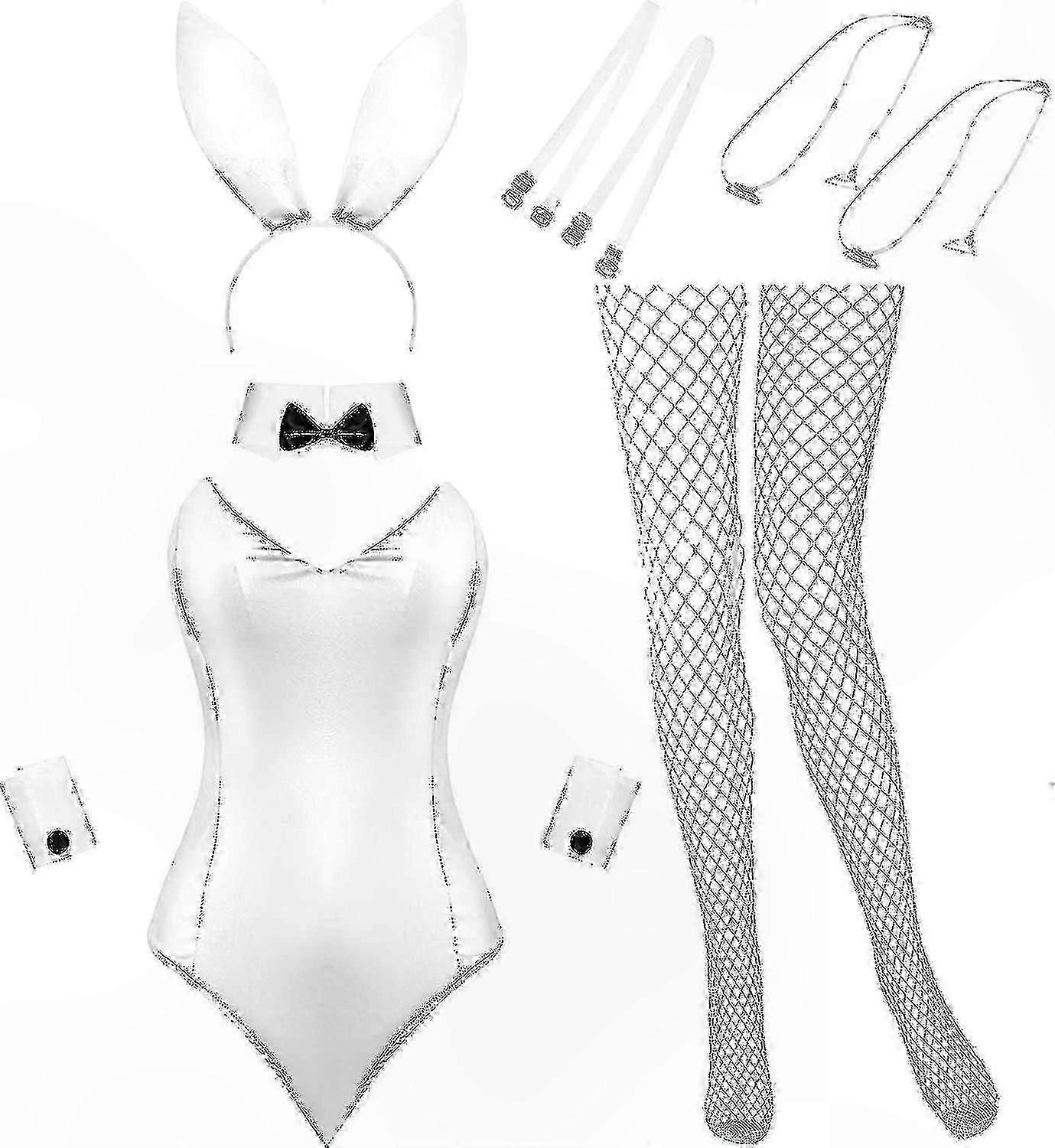 Rabbit Costume Women Lingerie Bodysuit with Tails for Halloween Christmas Role Play Outfit Set Z