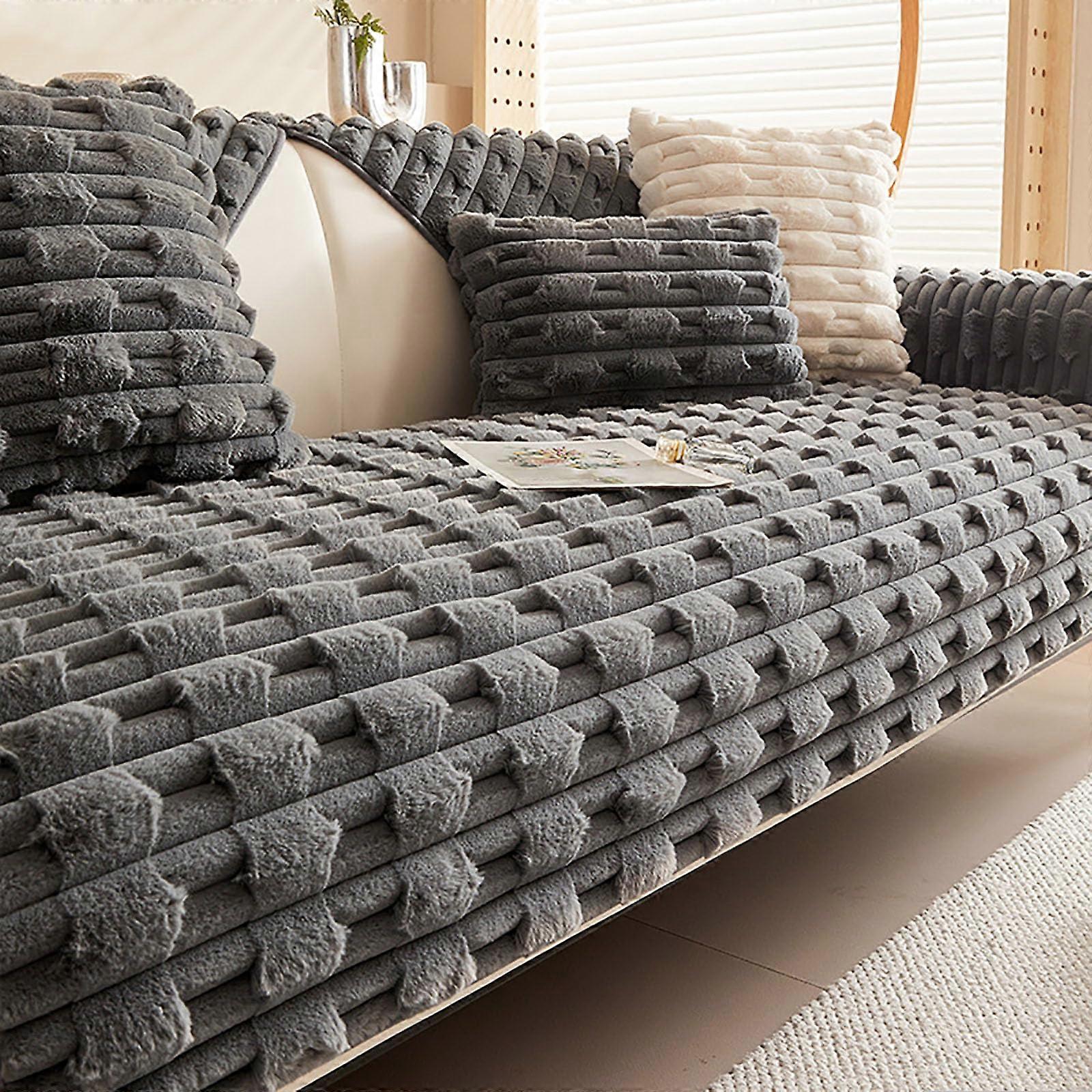 Rabbit faux faux fur sofa cushion, thick nonslip pillow with minimal shedding, for living room sofa floor cushion, dark gray, 35x102in/90x260cm.