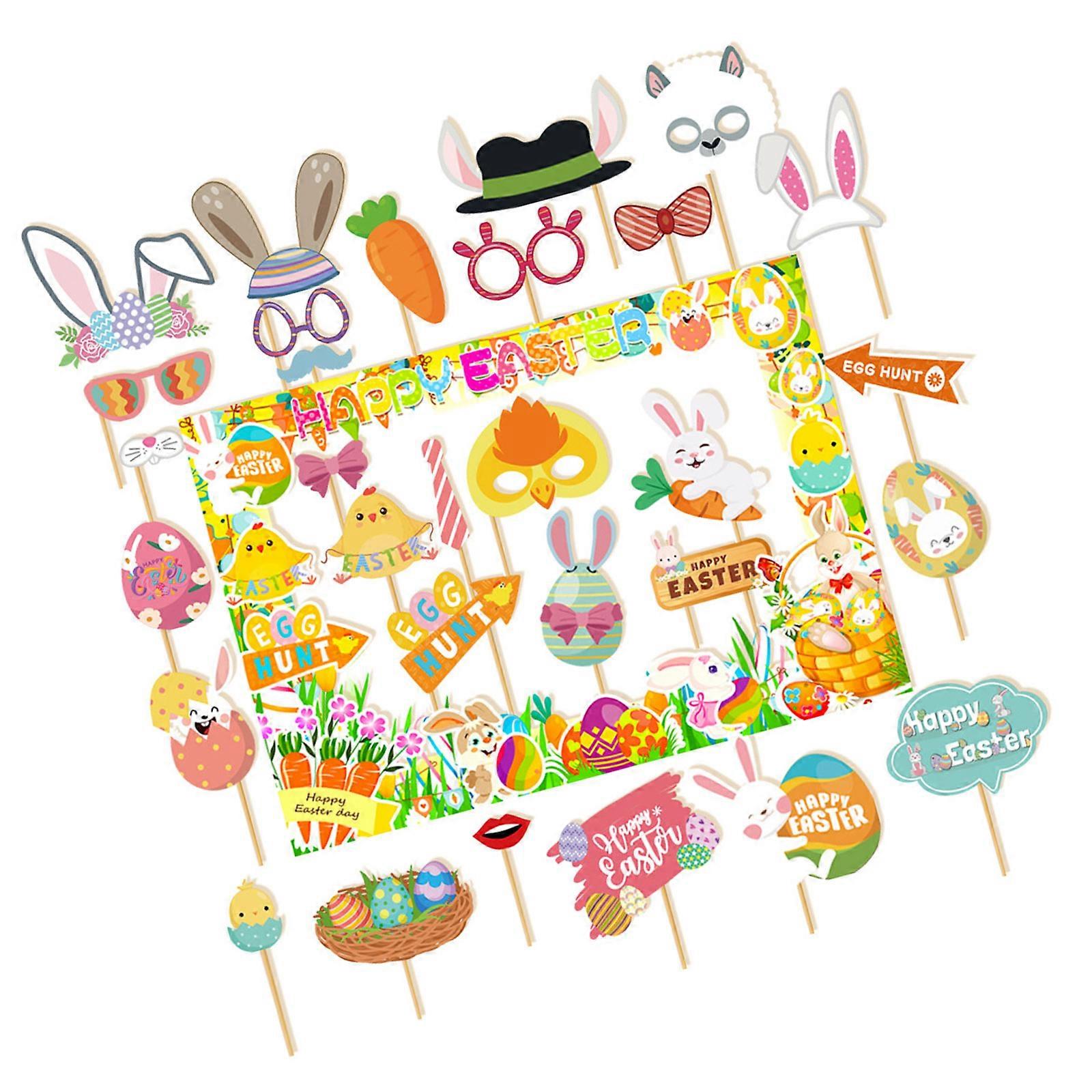 Bunnies Eggs Photo Frame and Handheld Photography Props Selfie Picture Frame for Adult Children Festival Celebration Multicolor