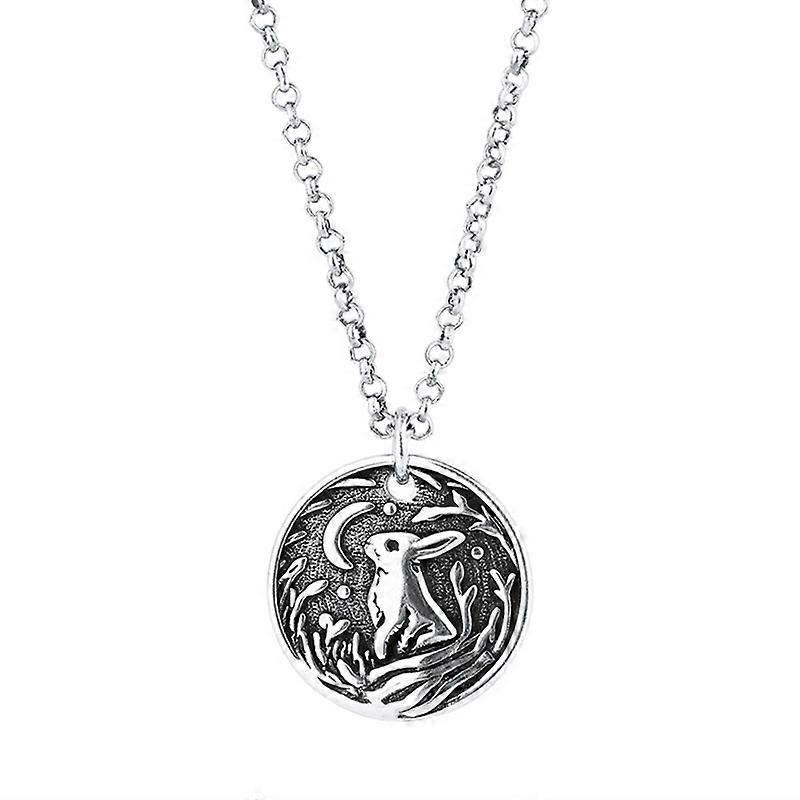 Rabbit Moon Medal Pendant Necklace Round Cute Animal Bunny Jewelry ChainNecklace