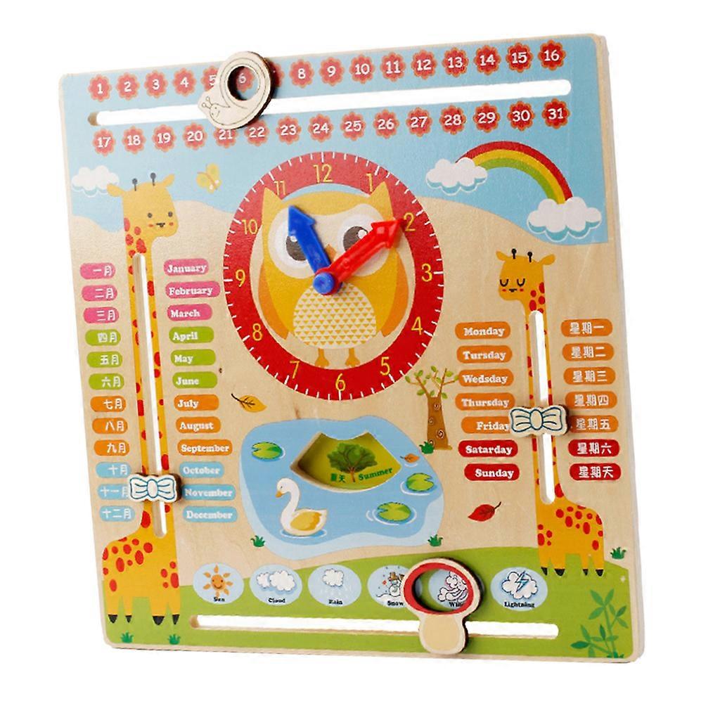 Wood Calendar Toy Sorting Clock Date Weather Kids Educational Toy-Animal Zoo
