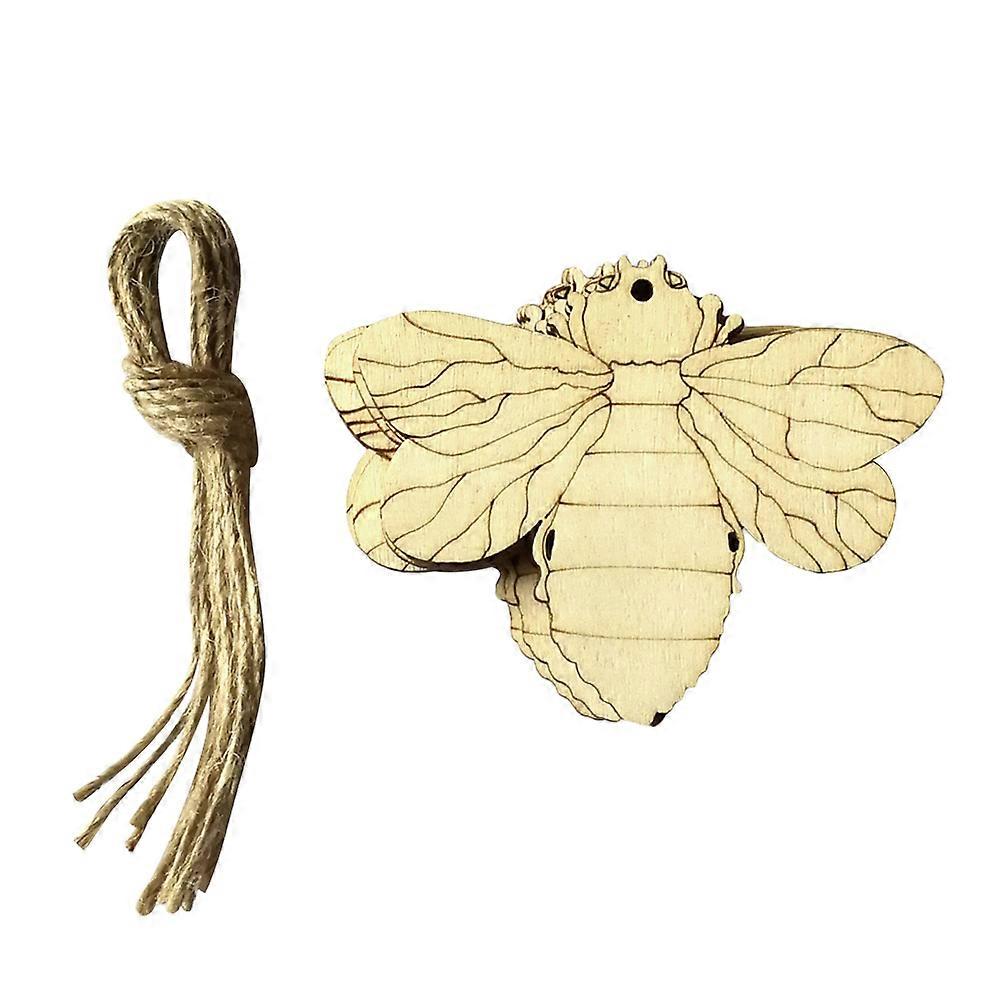 Wood Crafts Bee Shape Pendant For Wall Door Home Beige 9x7.3x0.3cm 10Pcs