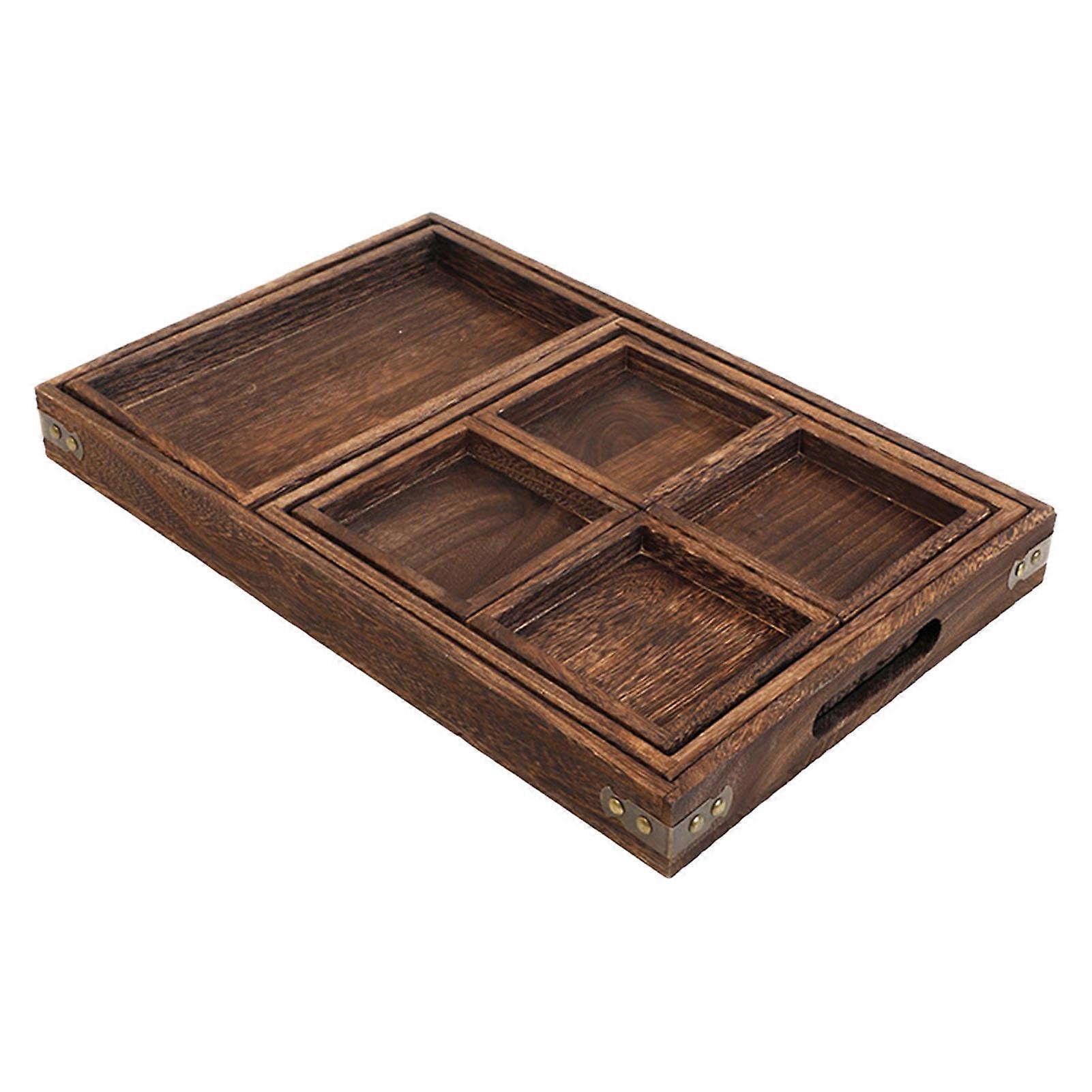 Wood Tea Tray Fade Resistant Exquisite Retro Reincompatibleced Rectangular Tea Serving Tray_