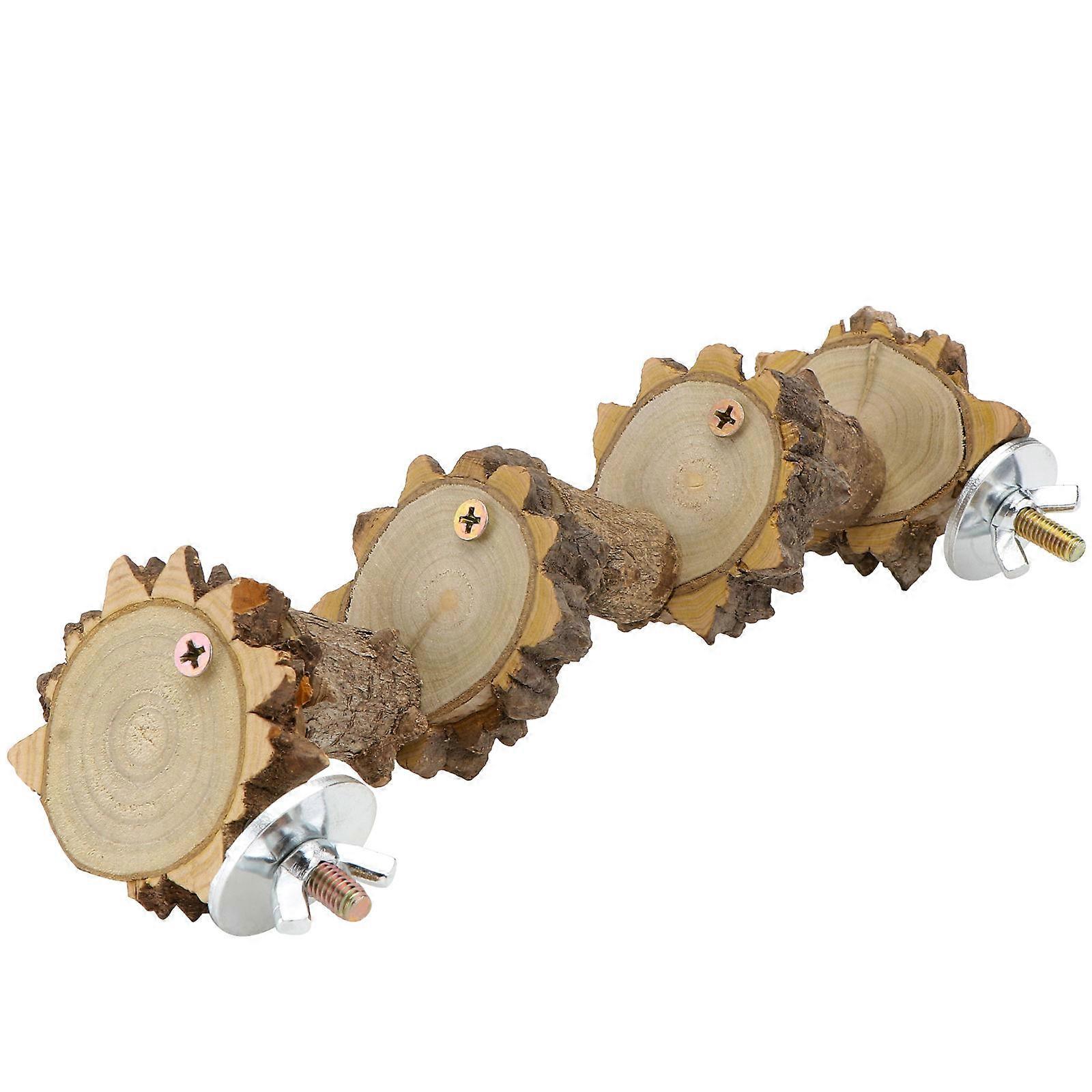 Wood Bird Perch Stand Parrot Foraging Stand Bird Owners Accessory Ladder Shape Stainless Steel Light Brown 6.7×2.2×2.2in Stable 1Set