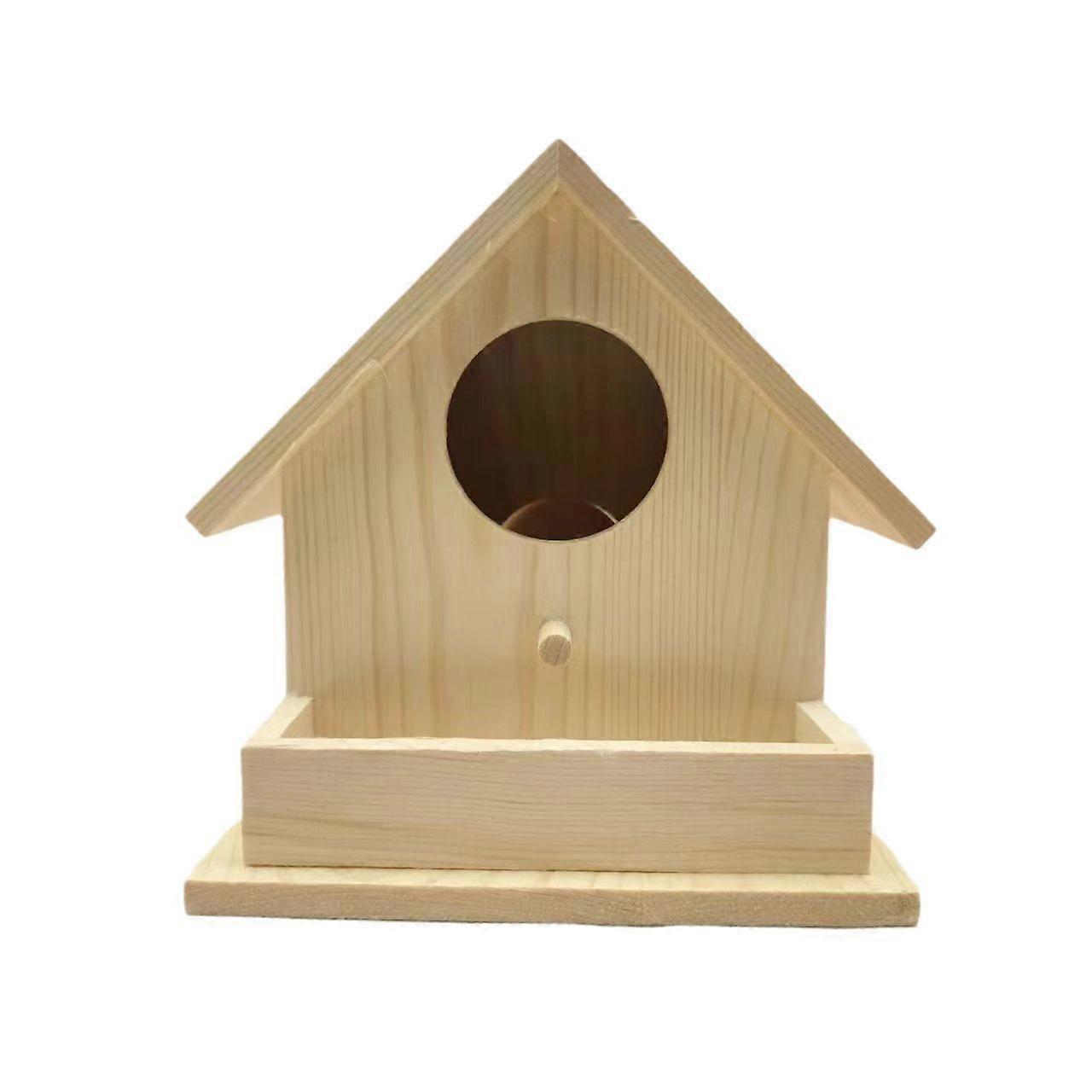 Wood Bird House: Diy Outside Wooden Unfinished Craft Bird Feeder Nesting Box - Paintable Hanging Outdoor Pine Birdhouse For Garden Yard Decor