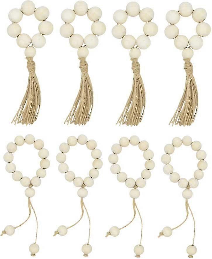 Wood Bead Garland Farmhouse Rustic Wooden Beads With Tassels For Home Decor (8pcs)