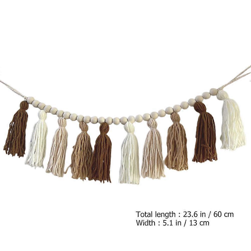 Wood Bead Garland Wooden Beads Tassel String for Home Decor Multi Material Hanging Decor 1Set
