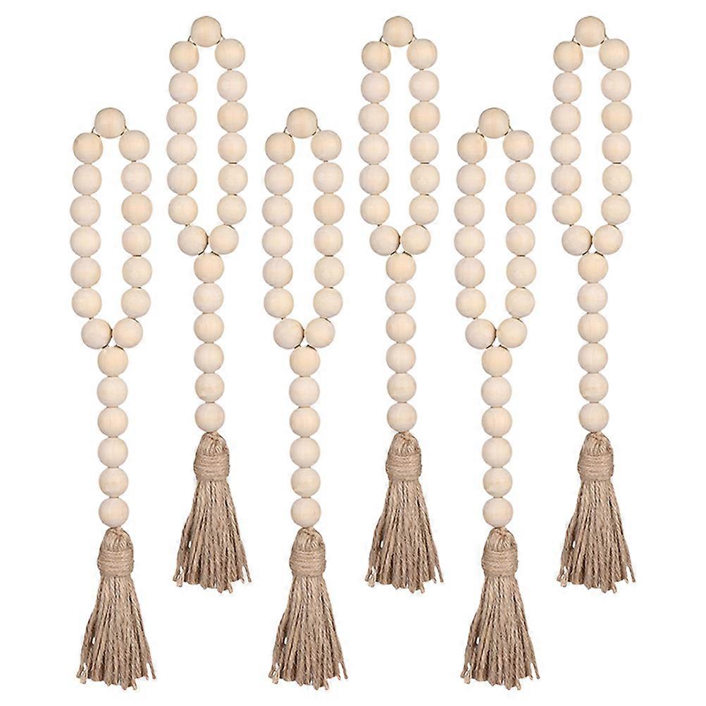 Wood Bead Pendant Rustic Farmhouse Wall Hanging Decor Homeowners 6Pcs Rope Material