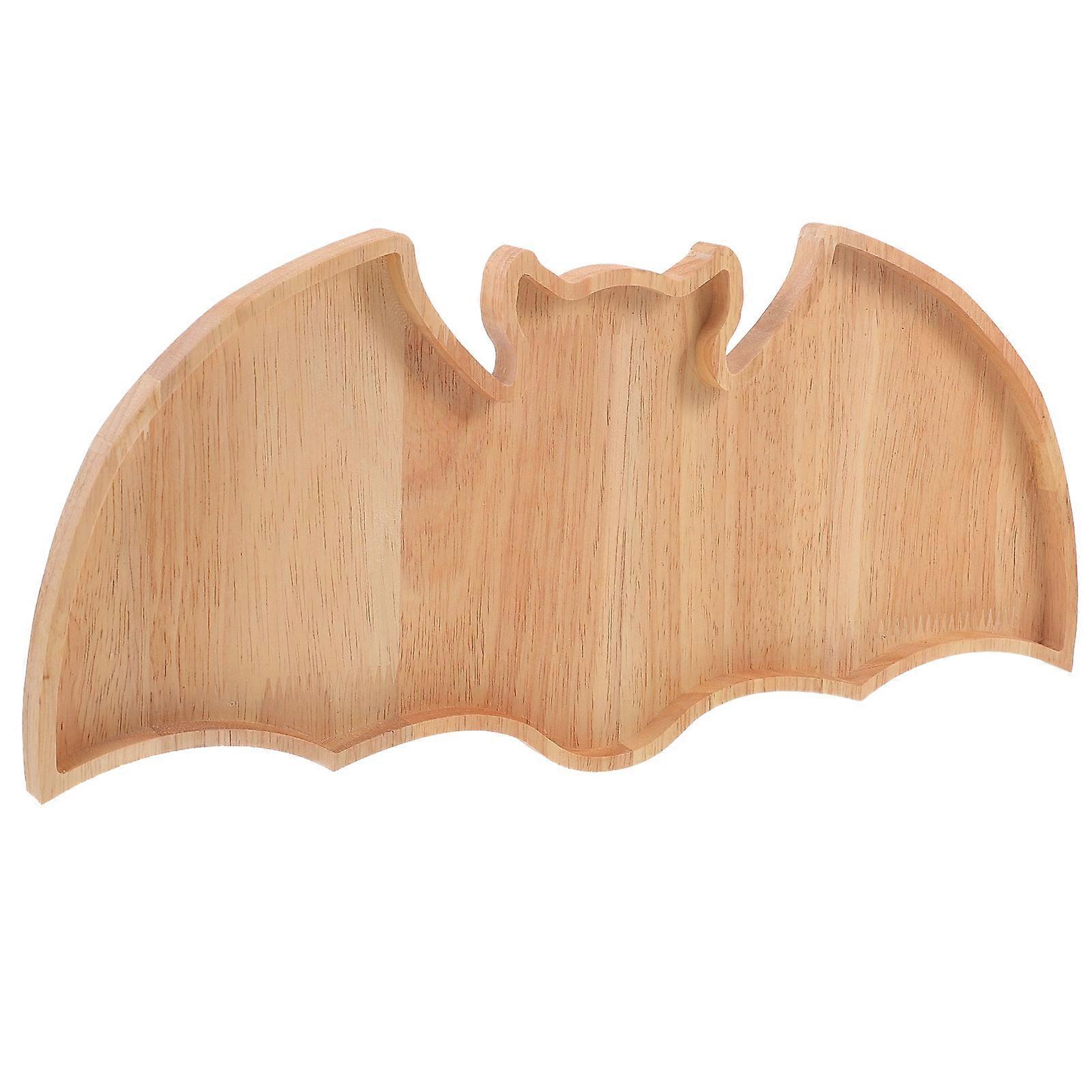 Wood Plates Bat Shape Candy Plate Halloween Biscuits Plate Snack .50X17.00X1.50CM Light Yellow 1Pcs
