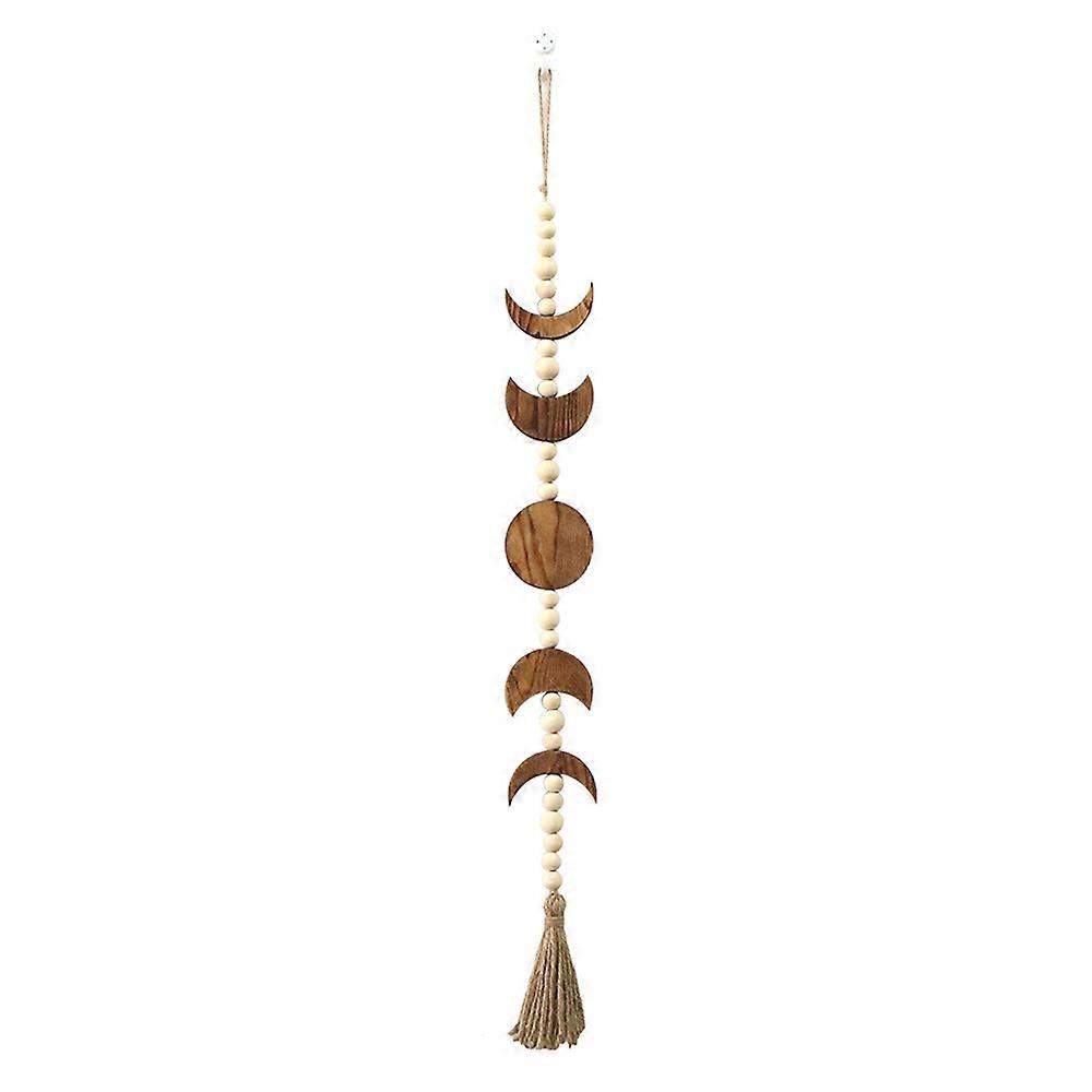 Wood Moon Phase Wall Hanging, Boho Farmhouse Beaded Moon Garland with Tassel Wall Decor,Brown