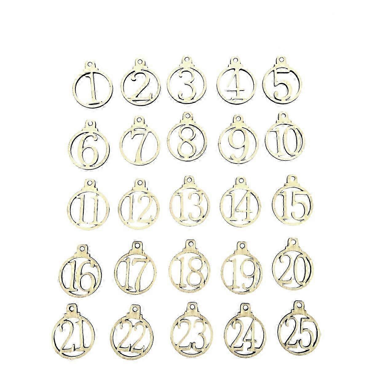 Wood 1-25 Digital Christmas Arrival Countdown Calendar Round Tag Wedding Christmas Favor Label Gift Tags Cards