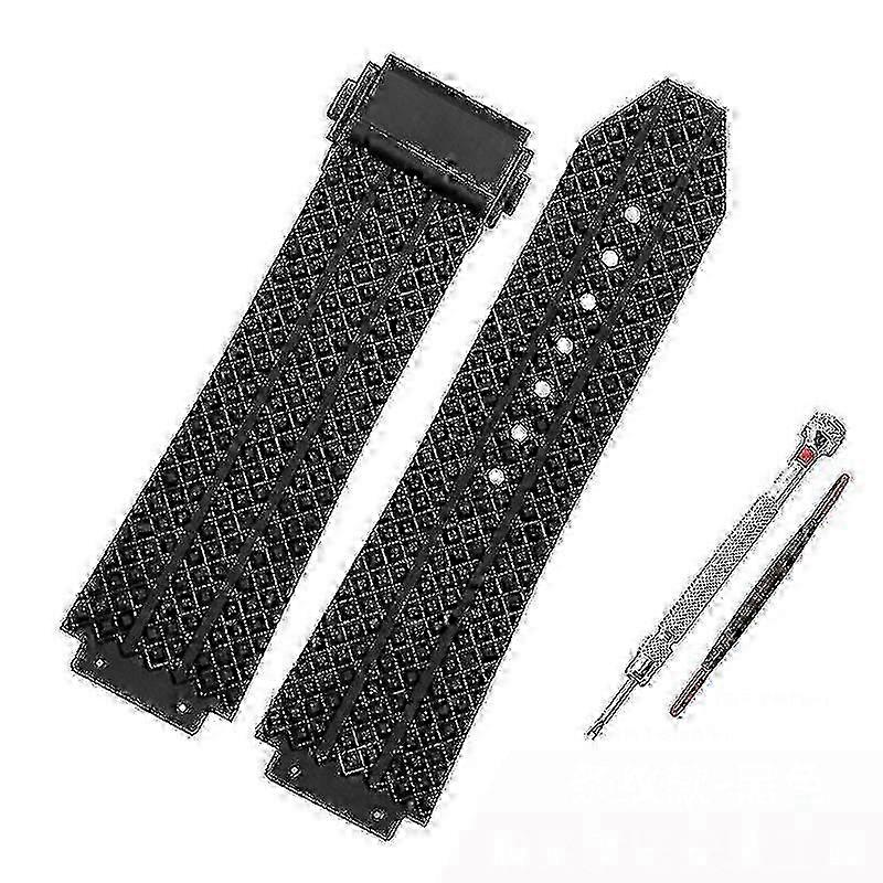 Watchband For Hublot Big Bang Silicone 25*19mm Waterproof Men's Watch Strap Chain Watch Accessories Rubber Bracelet Wristband-blue A Black