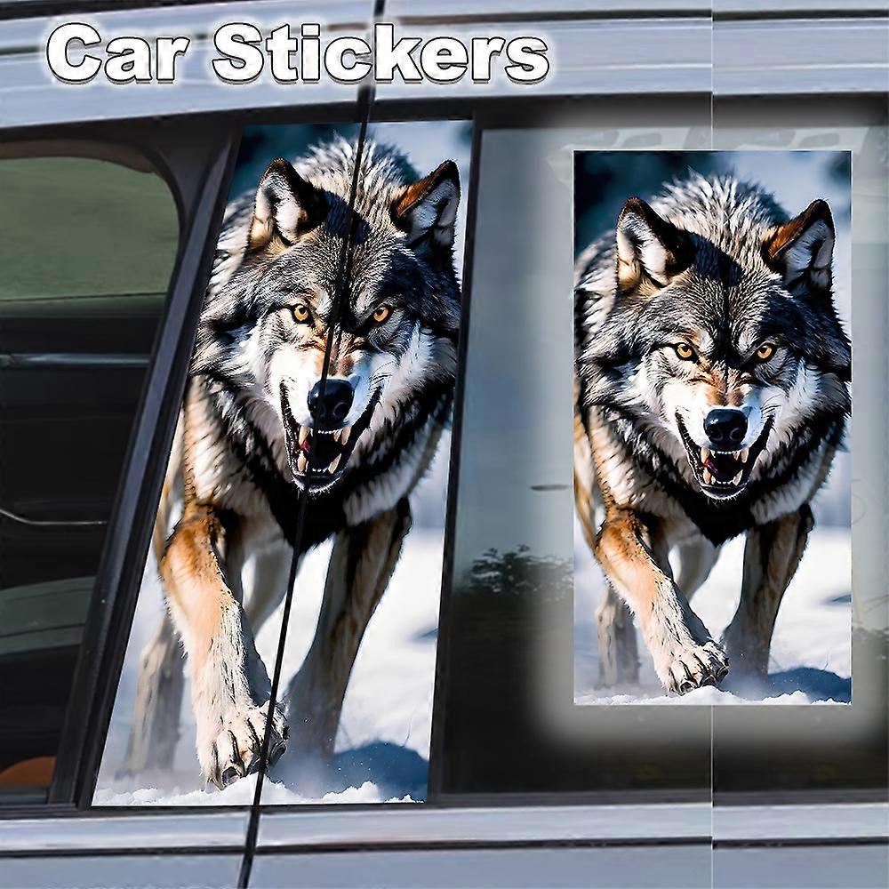 Wolf Moon Car Sticker B Pillar Cartoon Animal Funny Sunscreen Car Center Pillar Cover Anti-scratch Decorative Accessories DIY