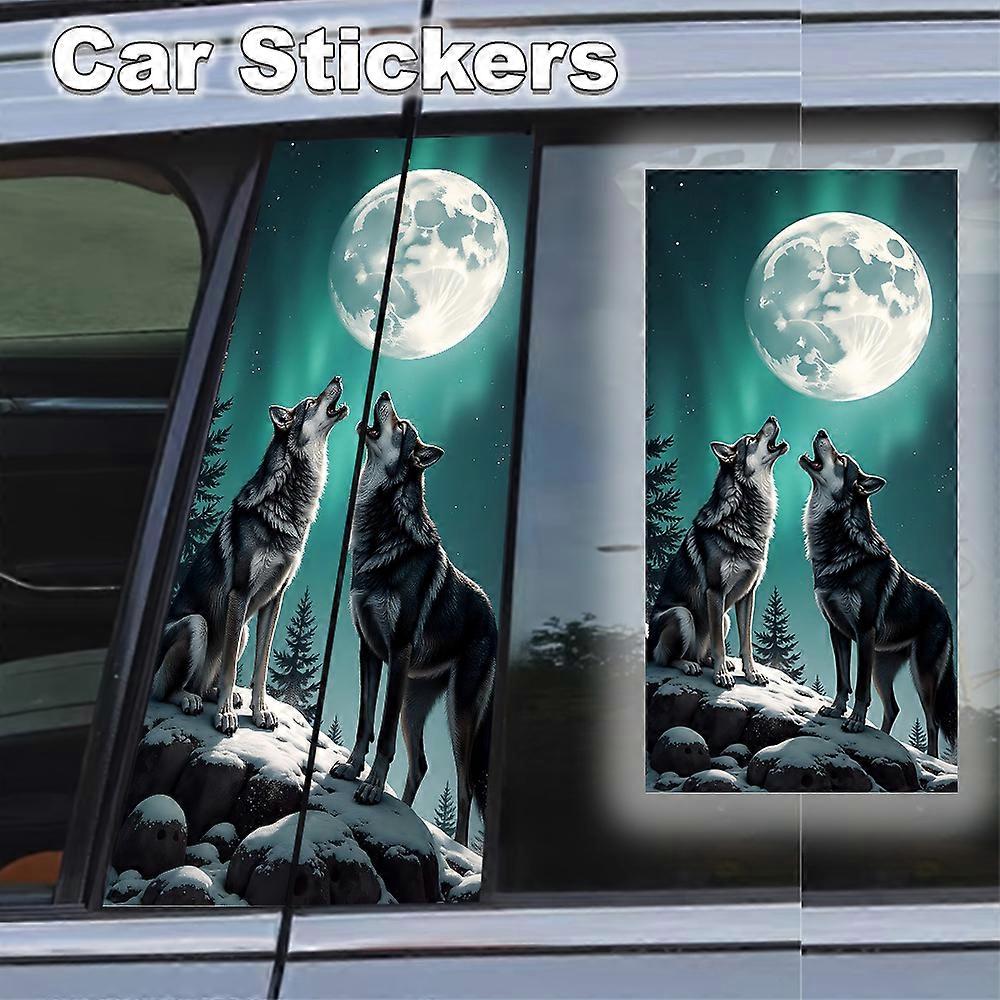 Wolf Moon Car Sticker B Pillar Cartoon Animal Funny Sunscreen Car Center Pillar Cover Anti-scratch Decorative Accessories DIY