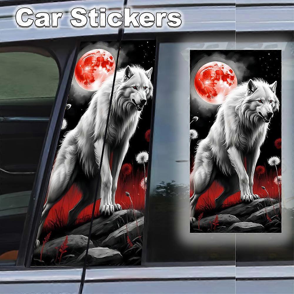 Wolf Moon Car Sticker B Pillar Cartoon Animal Funny Sunscreen Car Center Pillar Cover Anti-scratch Decorative Accessories DIY