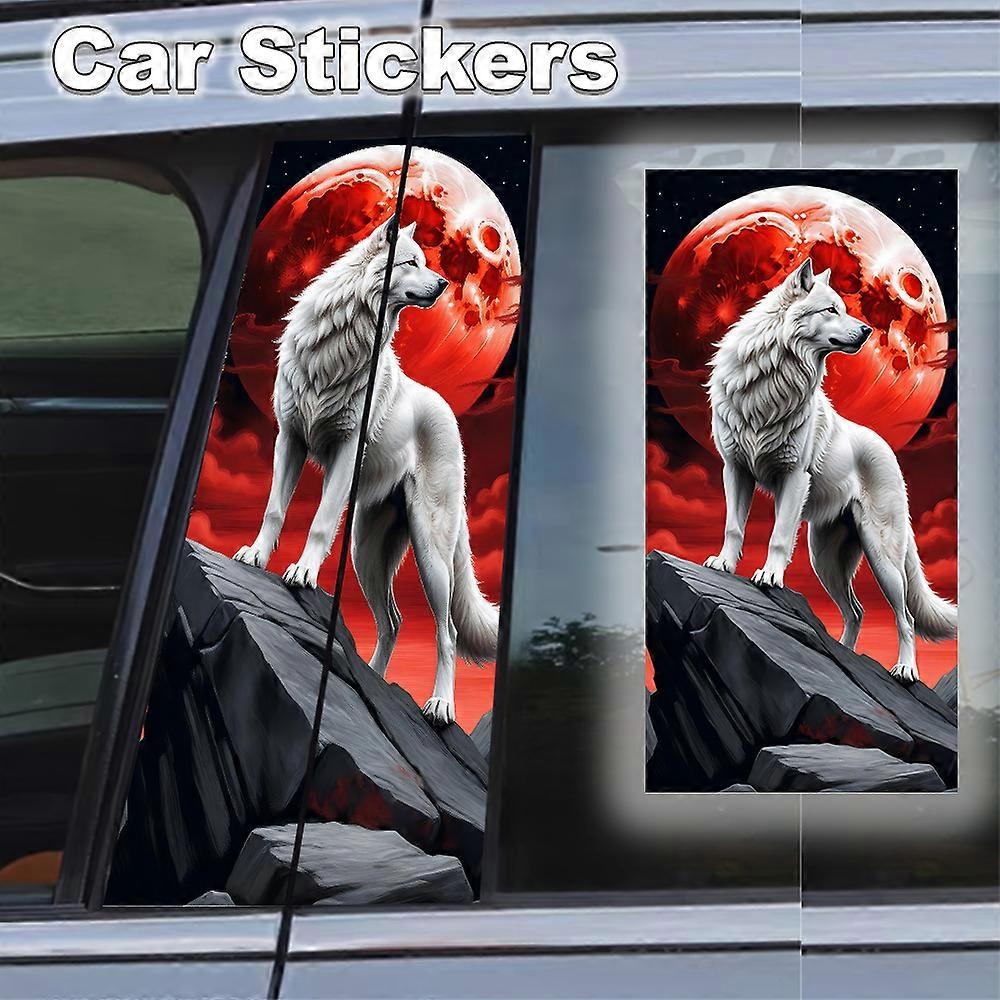 Wolf Moon Car Sticker B Pillar Cartoon Animal Funny Sunscreen Car Center Pillar Cover Anti-scratch Decorative Accessories DIY