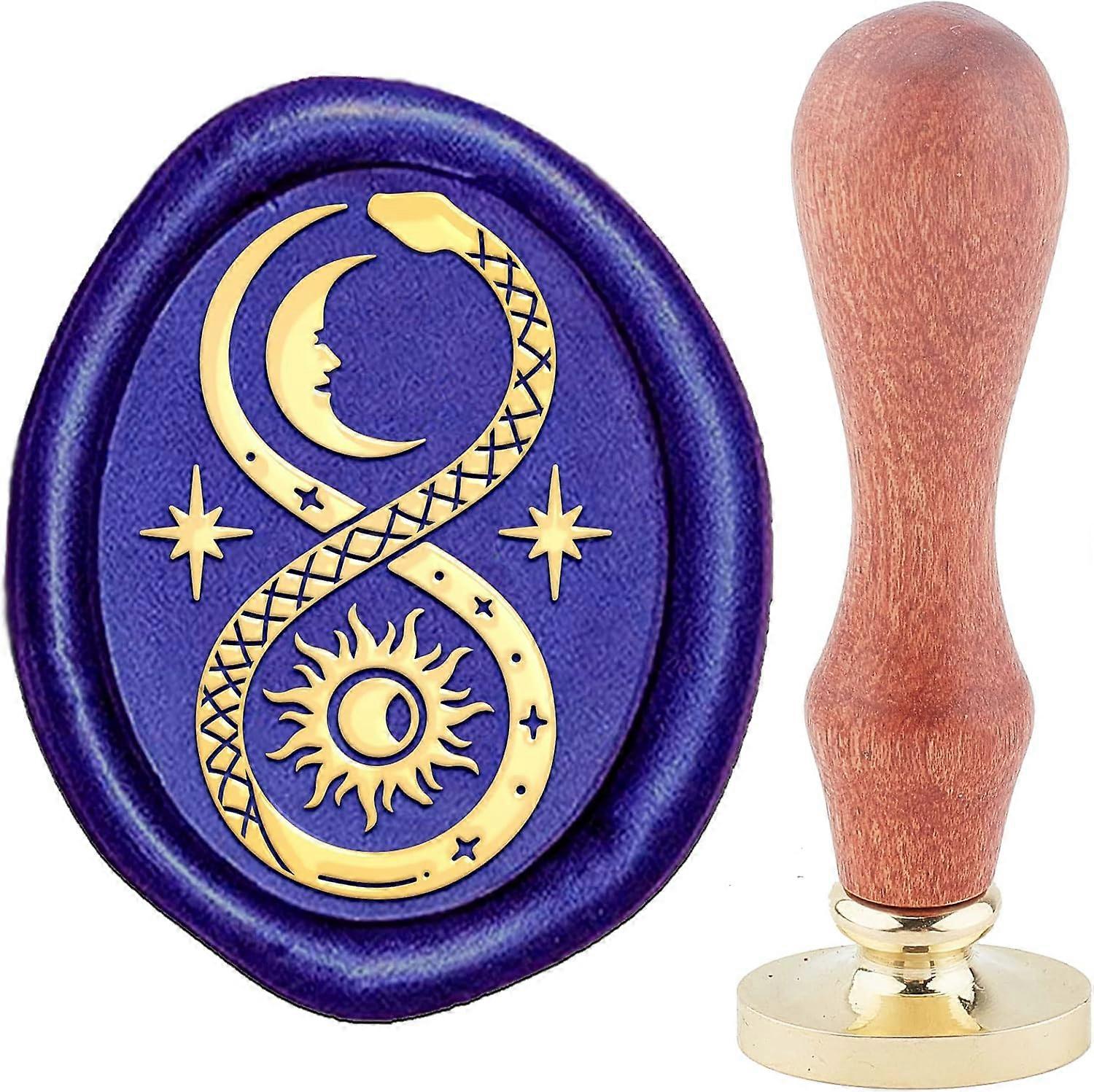 Ouroboros Wax Seal Stamp Sun Lunar Copper 3040mm Oval Sealing Stamp Vintage Detachable Brass Head with Wooden Handle Envelope Letter Invitation Card W