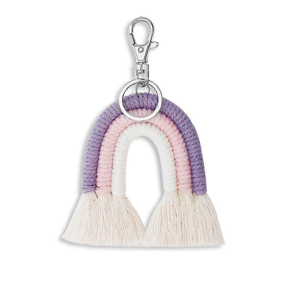 Woven Rainbow Keychain, Key Holder, Key Ring Macrame Bag Charm Car Hangpurple
