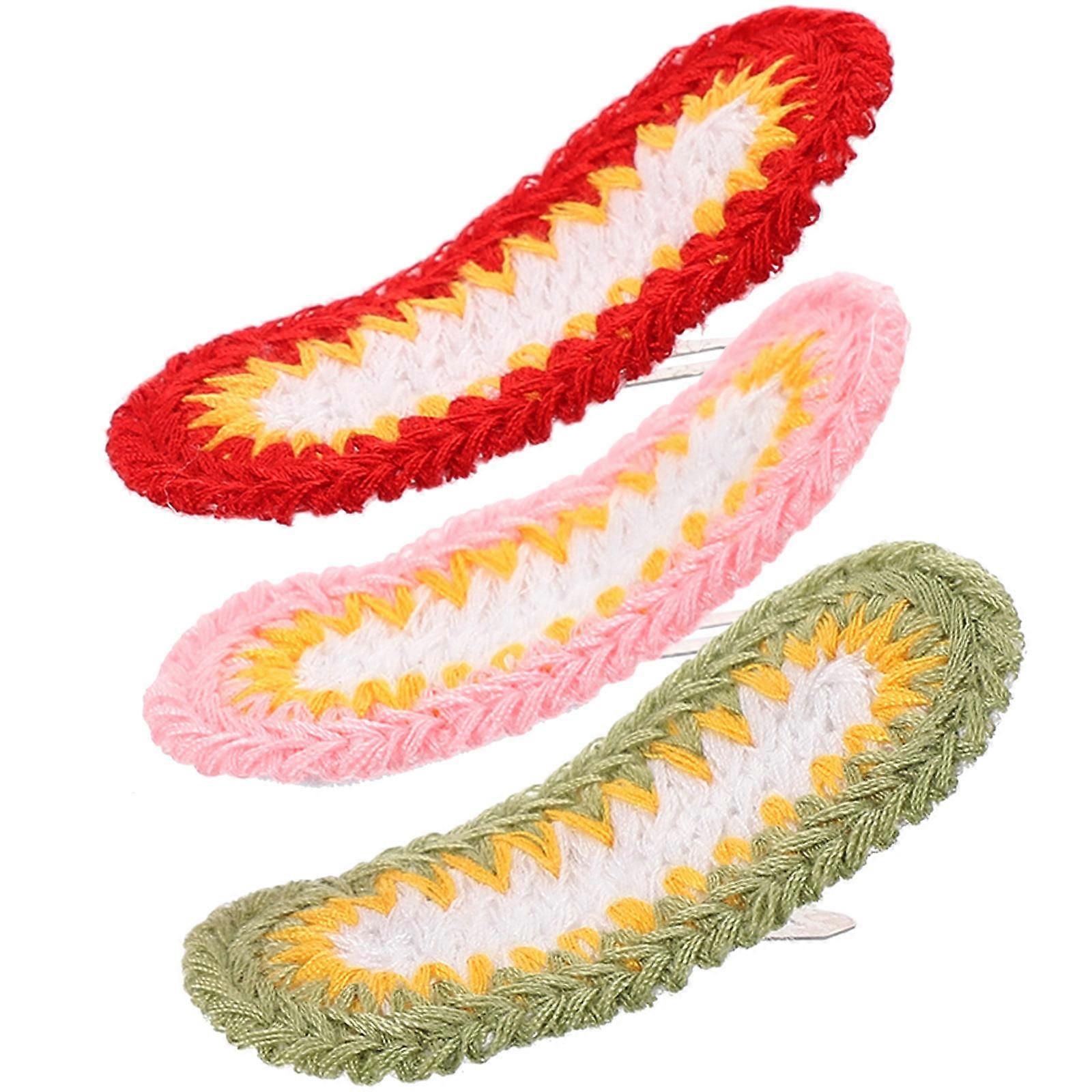 Woolen Hair Clips 3Pcs Elegant Flower Pattern Hair Accessories For Girls Assorted Color Good Grip