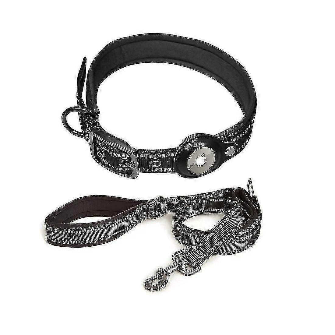 Nylon Dog Collar With Air Tag Holder Case, Adjustable Pet Collars And Nylon Dog Leash Set For Small Medium Large Dogs