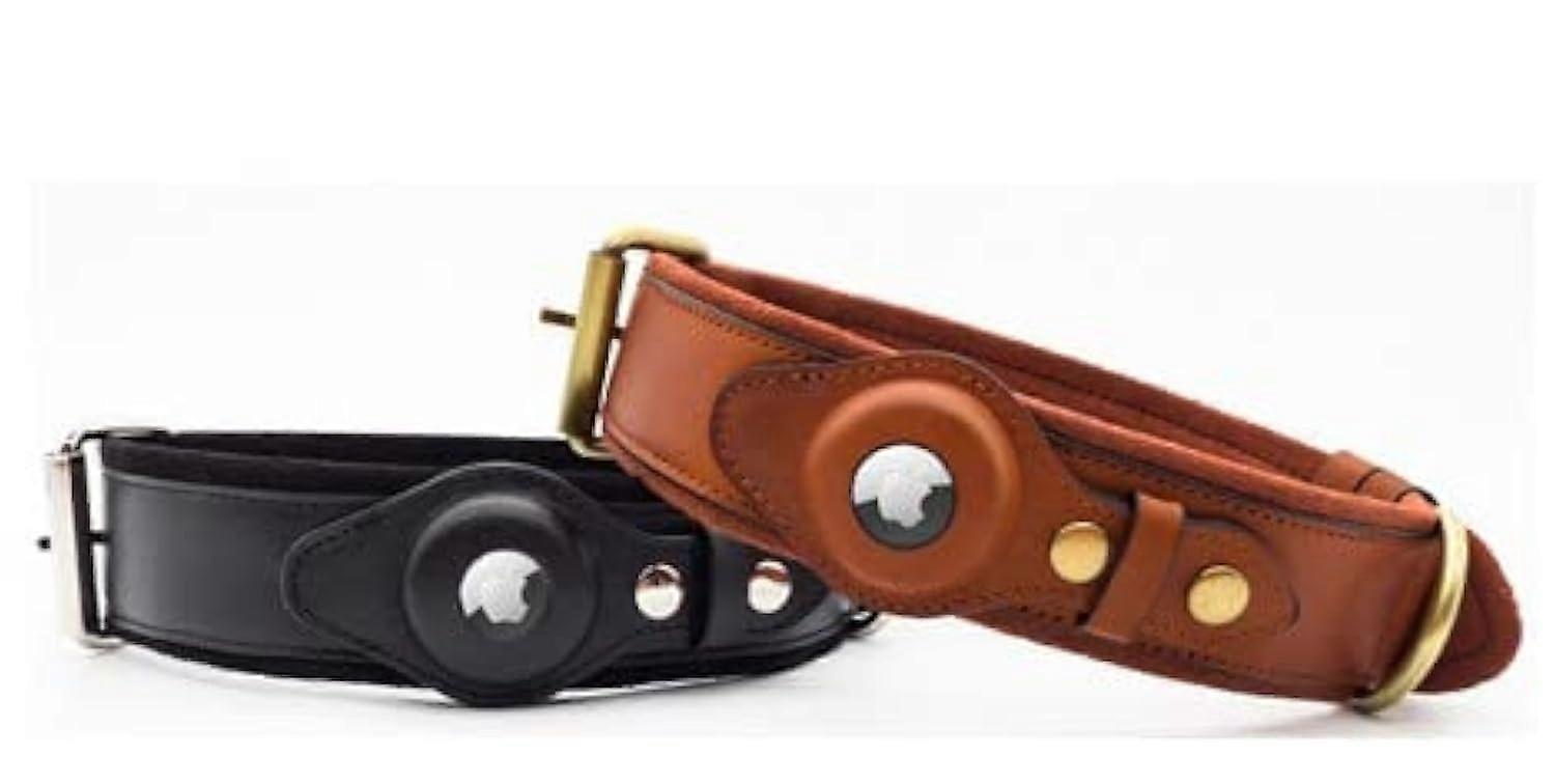 Dog Collar with air tag Holder, Pure Leather, Brown and Black, Small, Medium, Large, Airtag, Top Layer Leather Microfiber Lining (Medium, Black)
