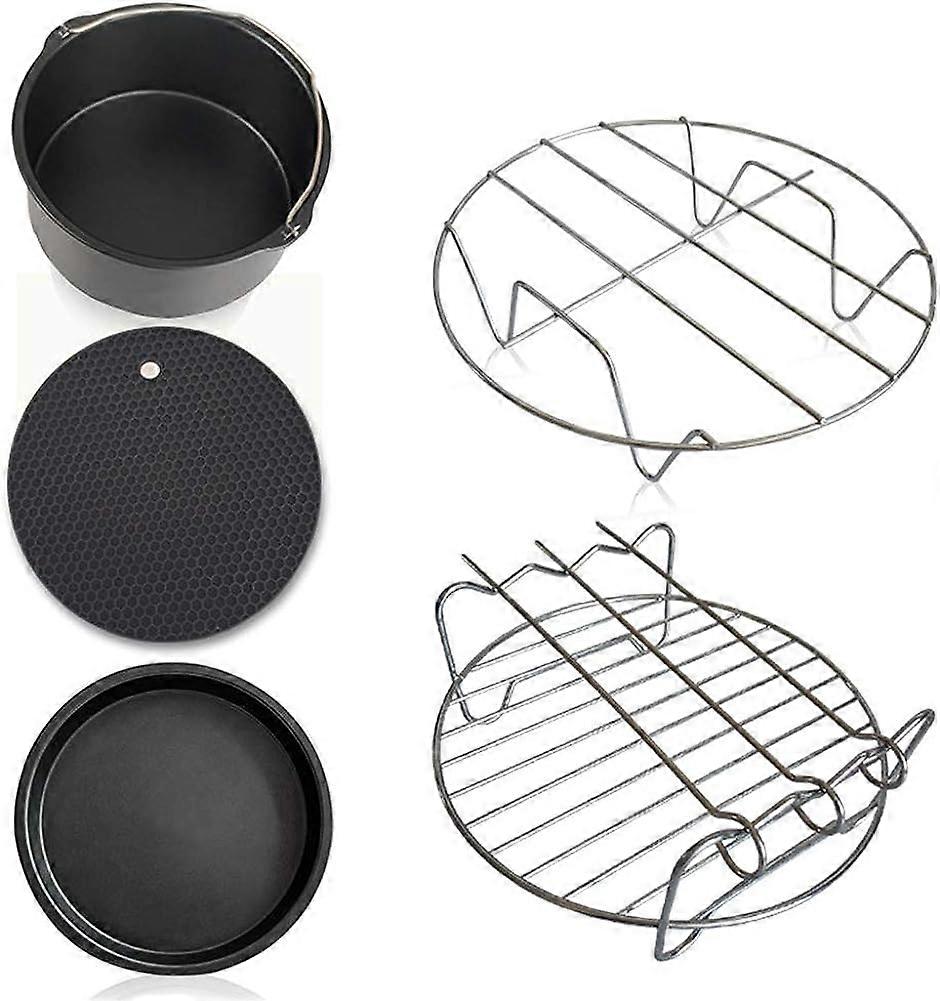 Features: Made of high quality food- grade material, safe and durable. Compatible with most Air Fryer ( 3. 7QT- 5. 3QT- 5. 8QT ). Each accessory pairs especially well with all Cozyna, Philips, Gowise Power Air Fryers. 5 parts are included in this Air Fryer kit to meet your various cooking needs: 1 metal holder, 1 skewer rack, 1 cake barrel, 1 silicone mat, 1 pizza pan. Non- stick coating, easy to and dishwasher safe, easier pick- and- place, enjoy a more convenient and healthy life. Spare you time to make french fries, a pizza or pancakes with the ingredients you loved ( beef, eggs, potatoes etc. ) A better taste with less fat, using hot air for frying means less oil, less fat, and also less mess and smell compared to normal oil fryers for a great taste, healthier for your family.